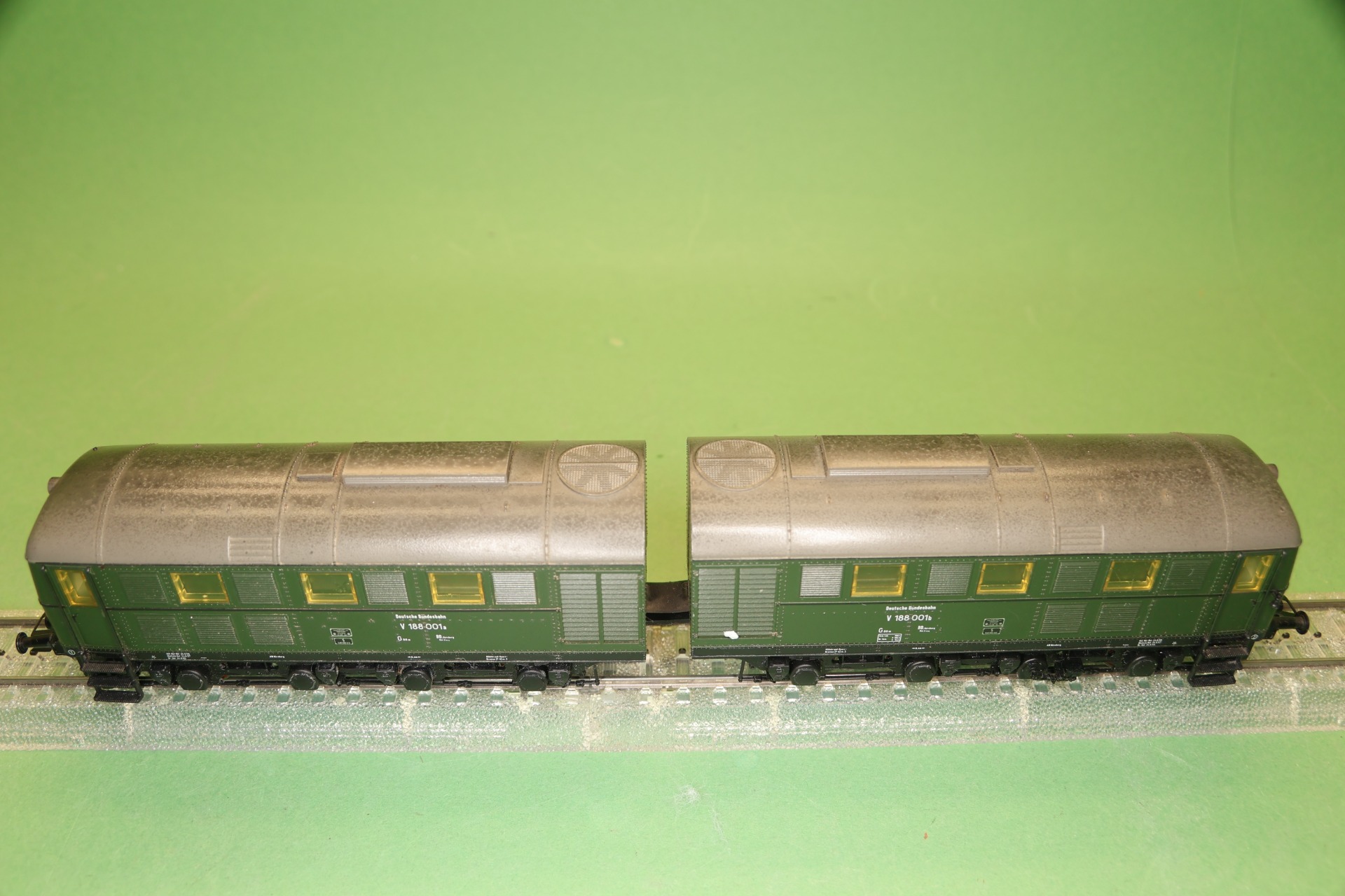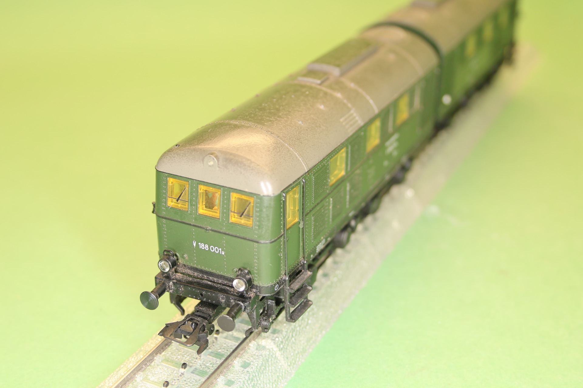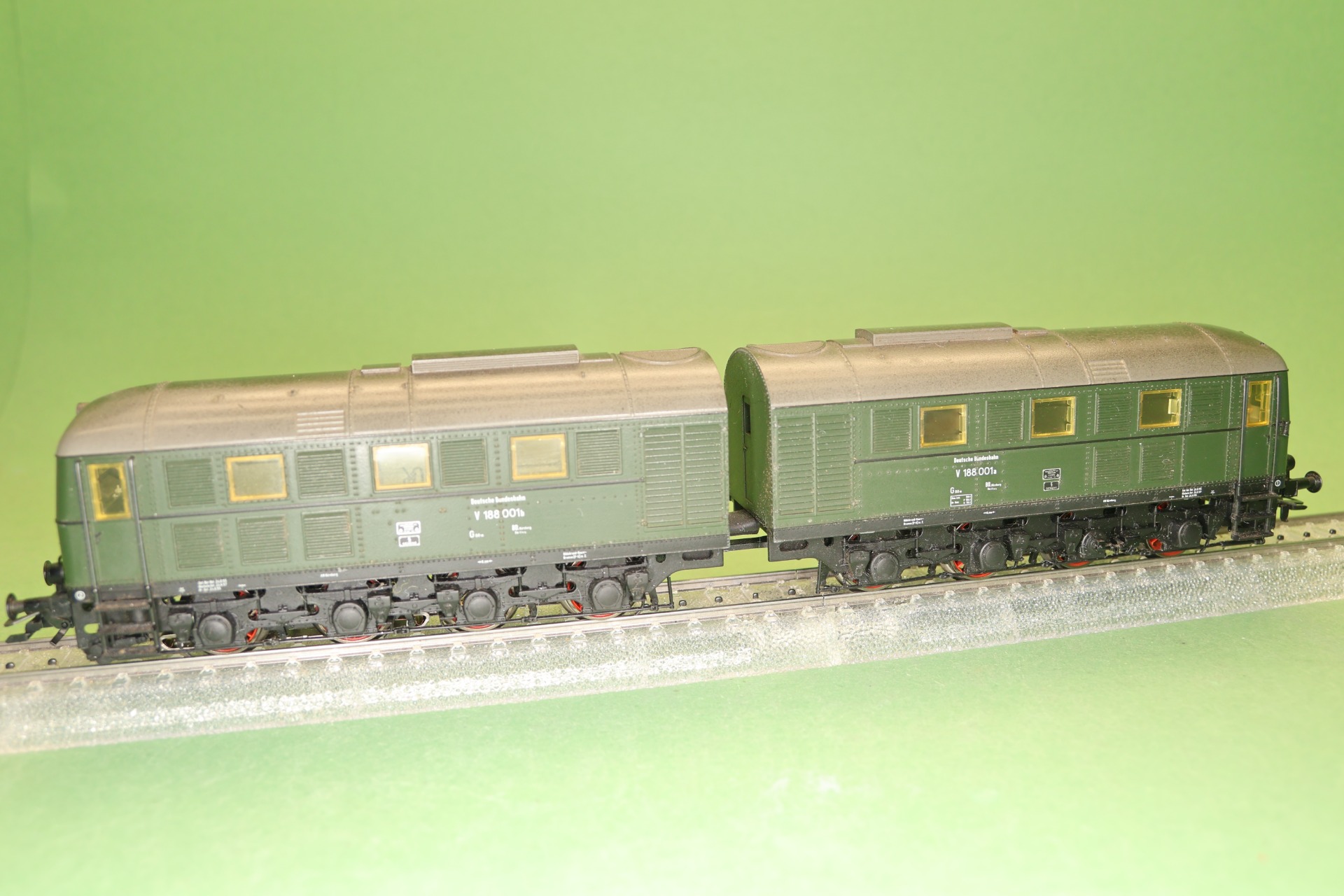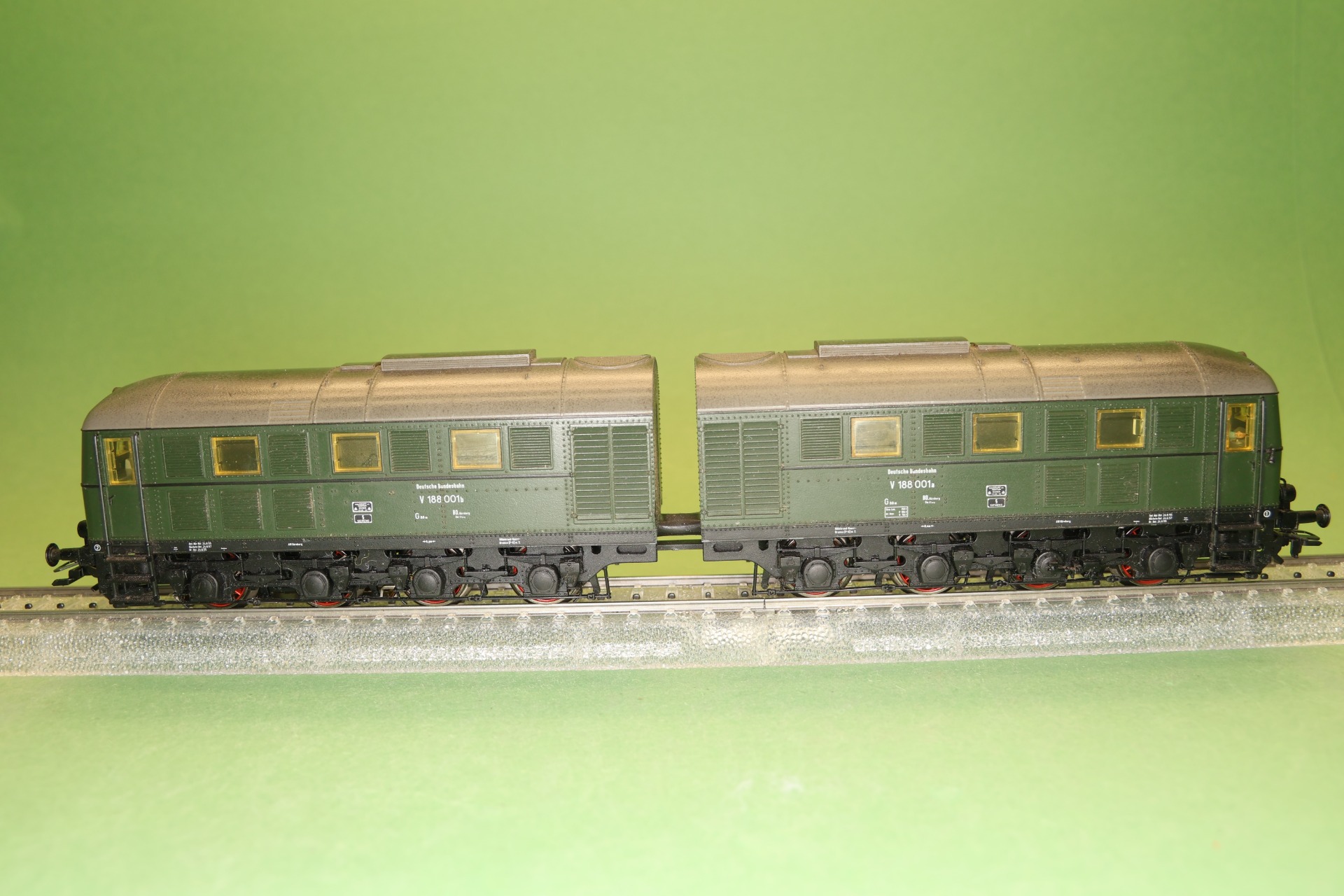 Dieselelektrische locomotief van de bouwserie V 188 van de Deutsche Bundesbahn uit tijdperk III. De locmotief bestaat uit 2 motorwagens welke beiden zijn voorzien hoogvermogensmotor, van het type drum collector (5*DCM motor). Het model is voorzien van een geluidsdecoder met diesellocomotief rijgeluiden en een hoorn. Het model heeft een 3-punts frontsein en 2-punts sluitlichten welke wisselen met het schakelen van de rijrichting. De verlichting bestaat uit LED's.