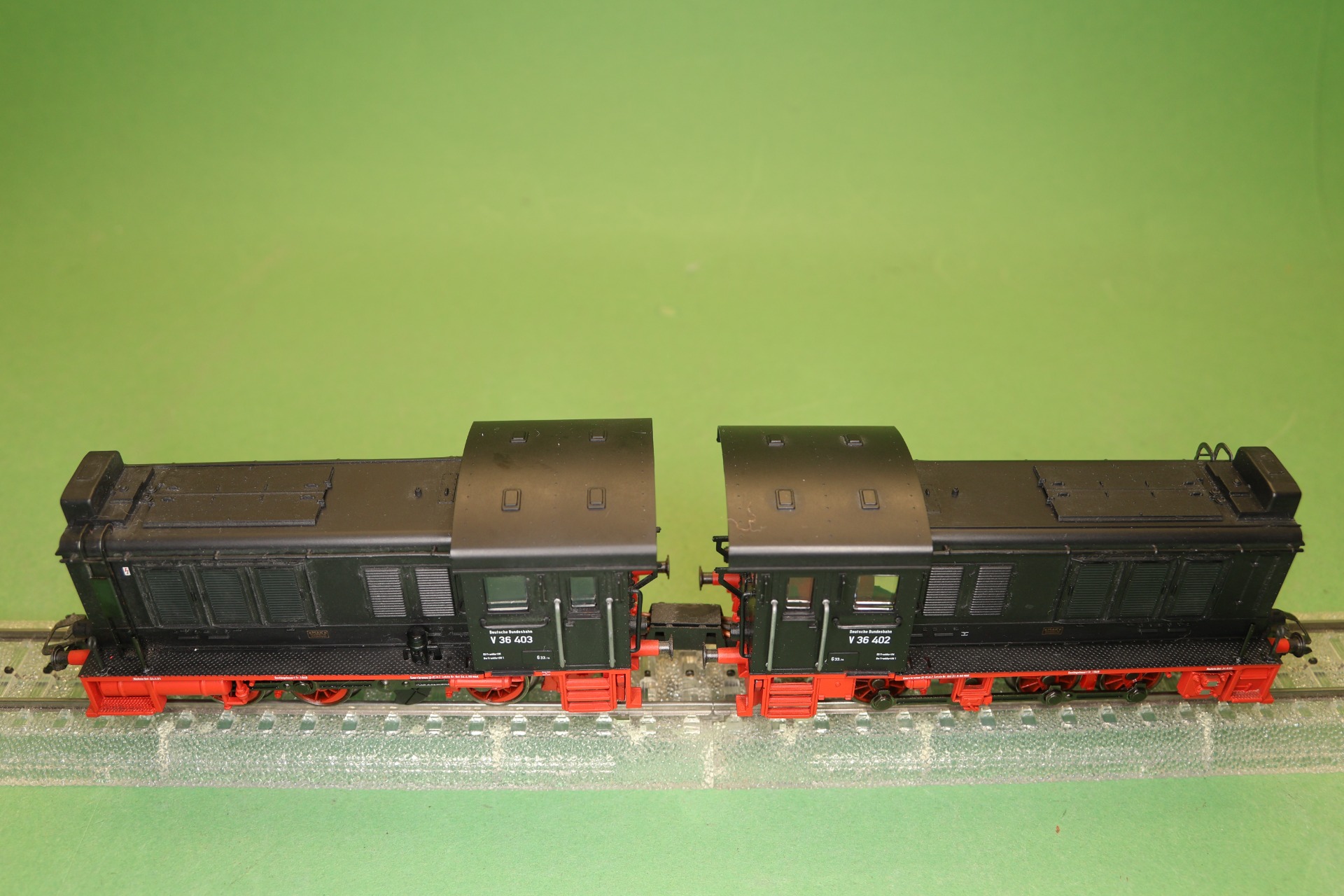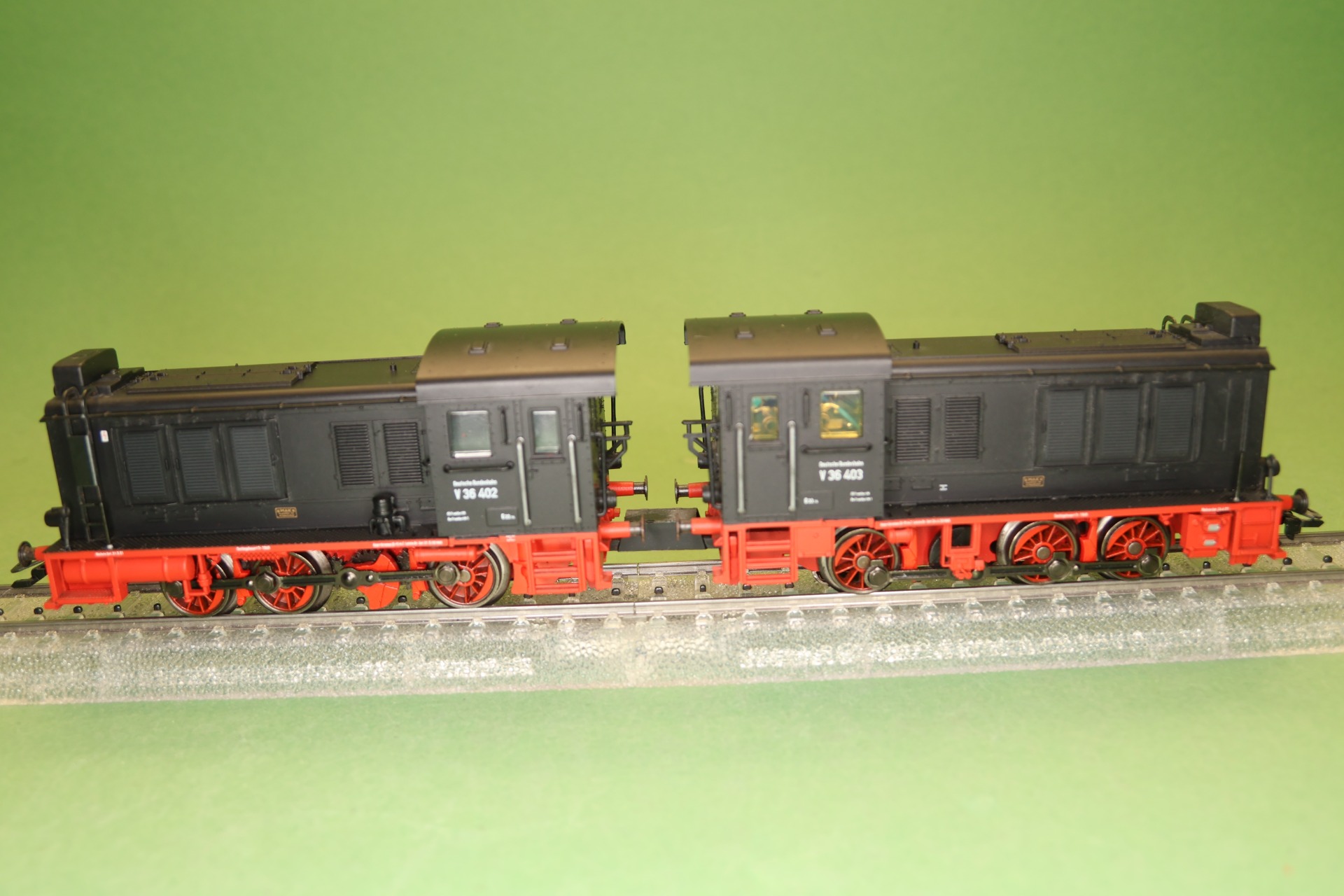 Serie V 36 van de Deutsche Bundesbahn (DB). Loc 402 en 403 als vastgekoppelde dubbele tractie. Inzet voor lichte goederen- en reizigerstreinen op zijlijnen.