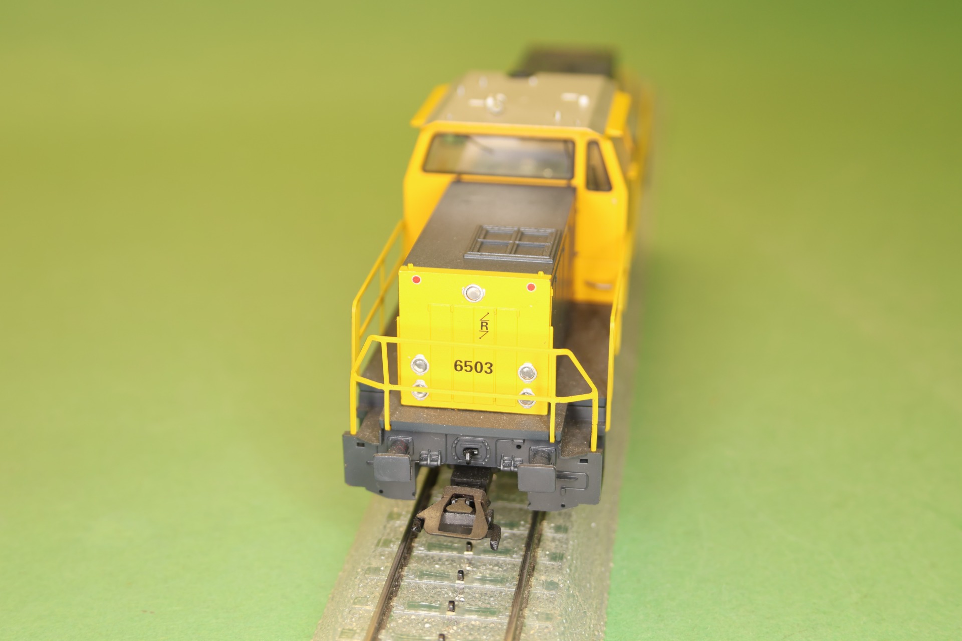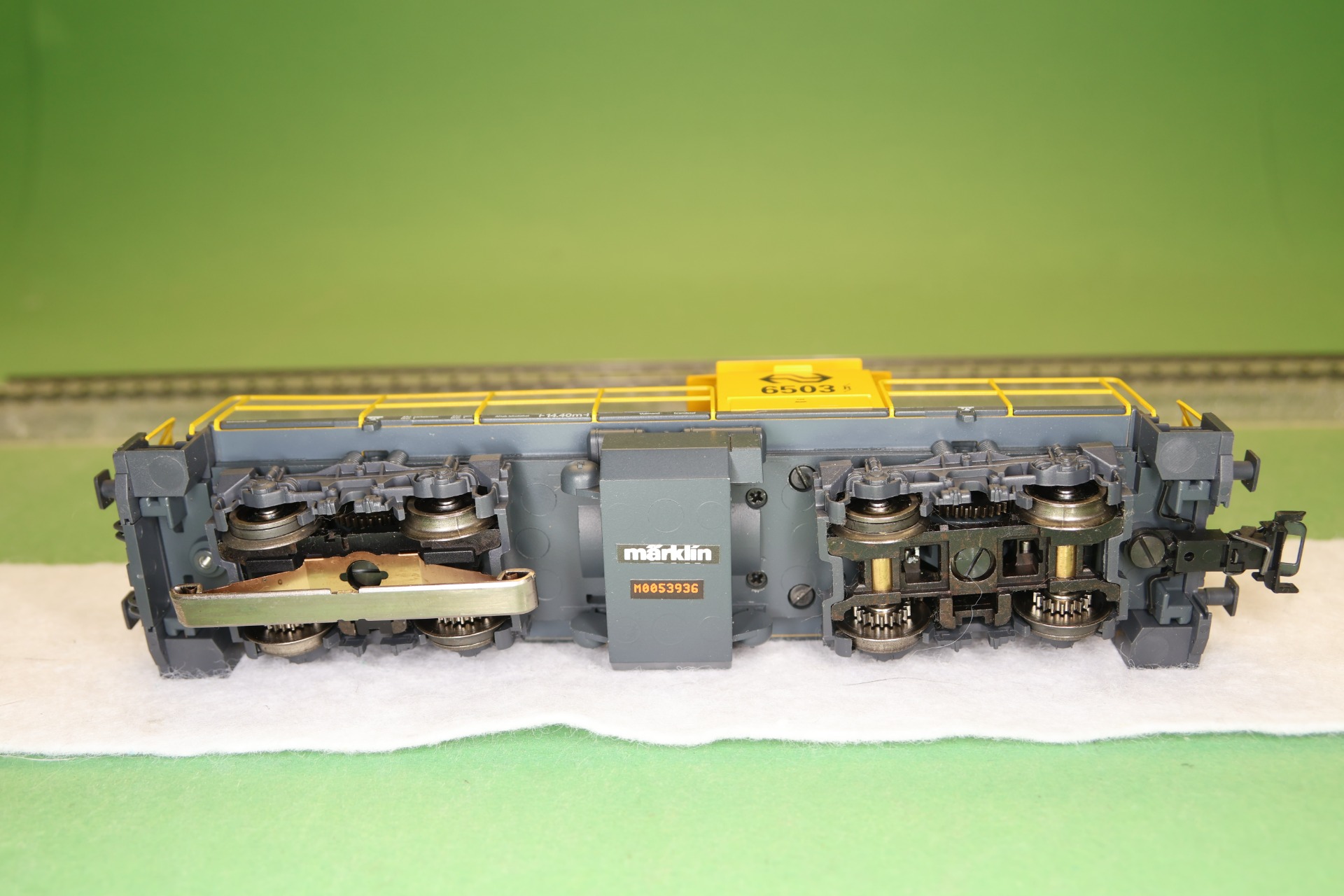 Model: Met DELTA-elektronica. Speciale motor met klokanker en vliegwiel. 4 aangedreven assen. 4 antislipbanden. Metalen zijrails en eindbordessen. Koppelingsbevestigingen verwisselbaar met frontschort.