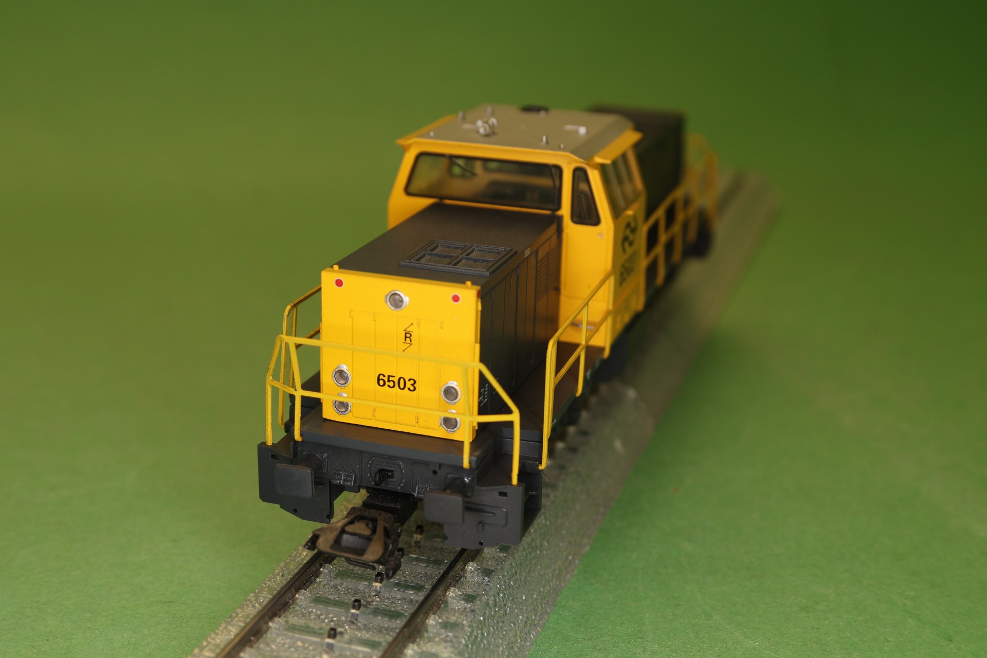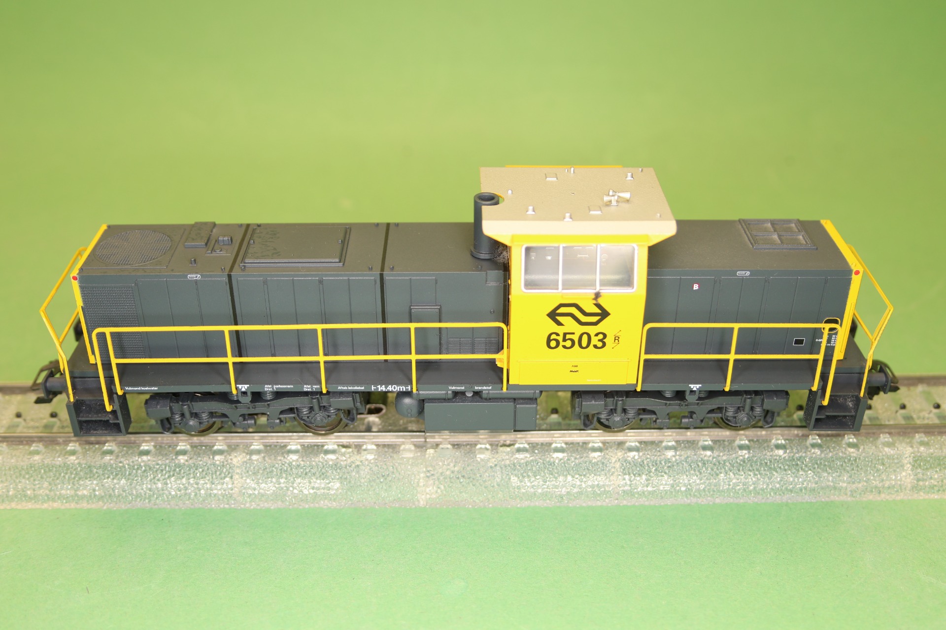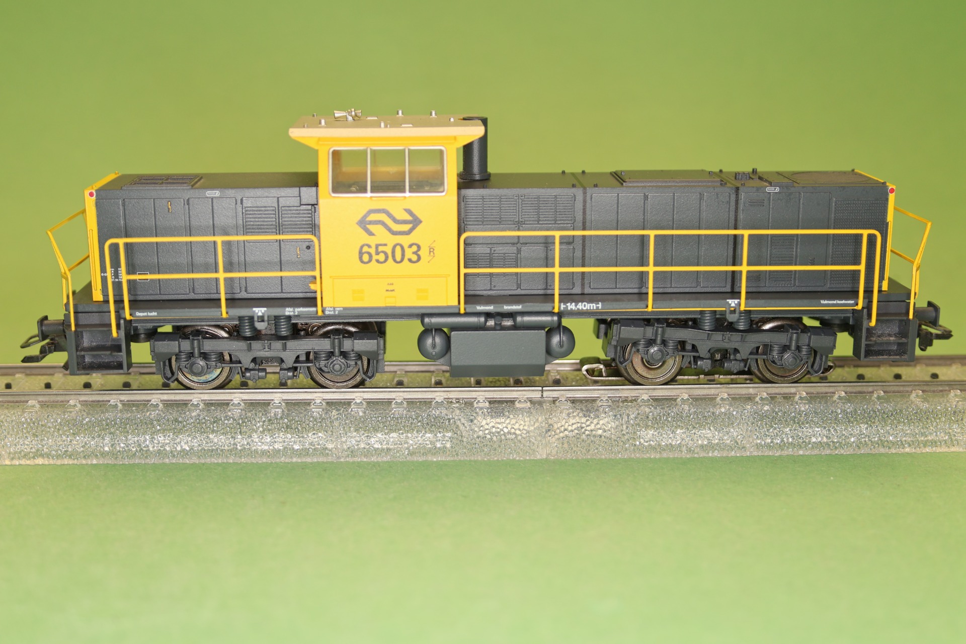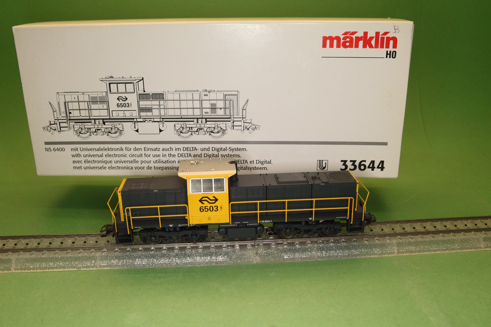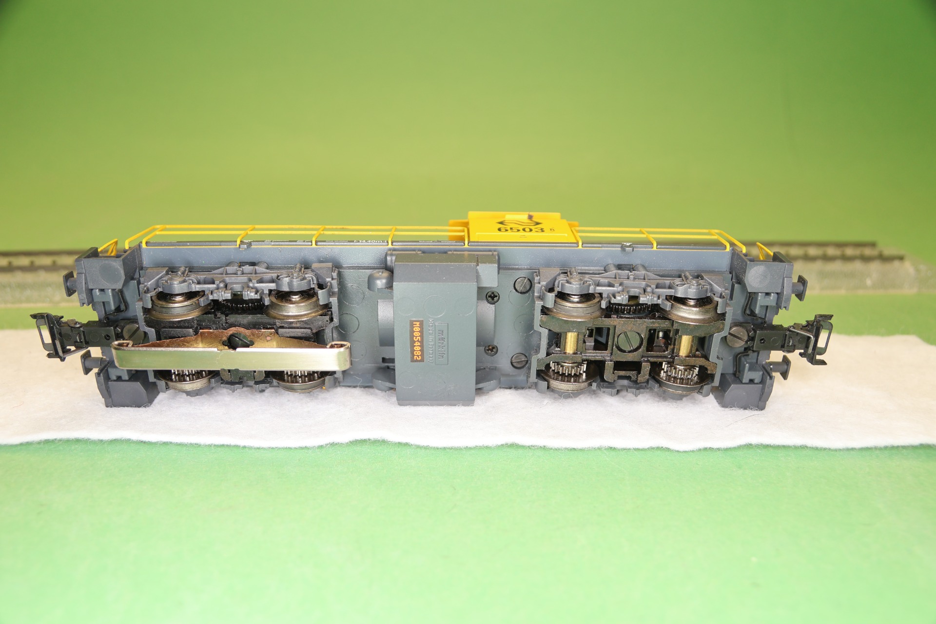 Model: Met DELTA-elektronica. Speciale motor met klokanker en vliegwiel. 4 aangedreven assen. 4 antislipbanden. Metalen zijrails en eindbordessen. Koppelingsbevestigingen verwisselbaar met frontschort.