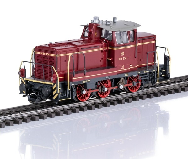 Diesel rangeerlocomotief type V 60 van de Deutsche Bundesbahn. Kleur purperrood. Dieselhydraulische aandrijving met blinde as. Met motorkap en machinistenhuis in het model van de serie-uitvoering. Dak van het machinistenhuis in het model van de locs tot ca. V 60 390. Dak van het machinistenhuis met ventilatieluiken. Uitlaatdemper van het eerste model. Met kolengestookte Dofa kachel. Kolenkist op de rechter omloop achter de Dofa kachel. Locomotiefnummer V 60 334. Model in de uitvoerng omstreeks 1960.
