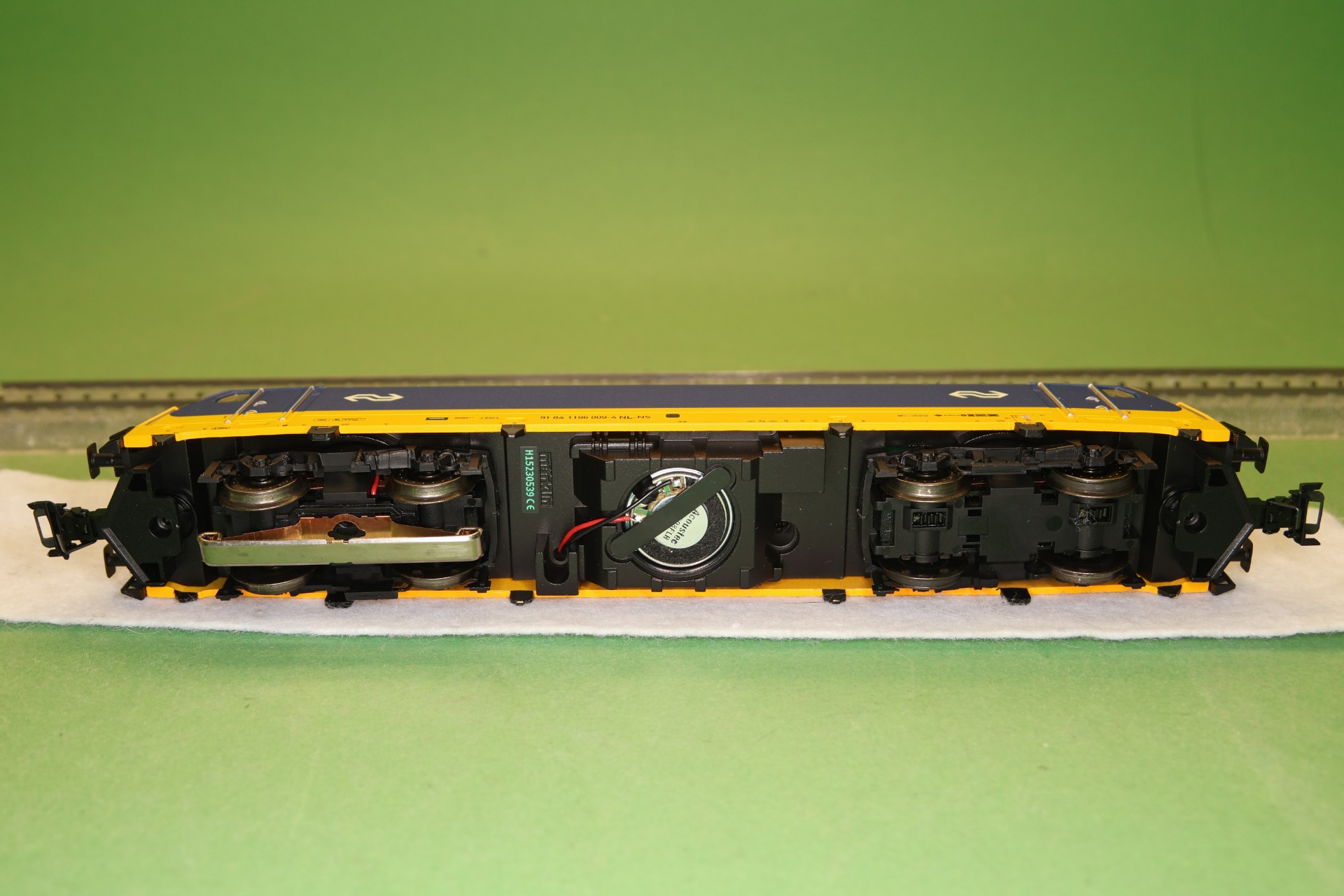 Model: met digital-decoder mfx, evenals uitgebreide geluidsfuncties. Speciale motor, centraal ingebouwd. 4 assen over cardan aangedreven. Antislipbanden. Met de rijrichting wisselend driepunts frontsein en 2 rode sluitseinen conventioneel in bedrijf, digitaal schakelbaar. Frontsein op lockant 2 en 1 beide apart digitaal uitschakelbaar. Als het frontsein op beide lockanten is uitgeschakeld, dan aan beide kanten werking van het dubbel A-sein. Verlichting met onderhoudsvrije warmwitte en rode LEDs. 4 mechanisch werkende dakstroomafnemers. Lengte over de buffers 21,7 cm.