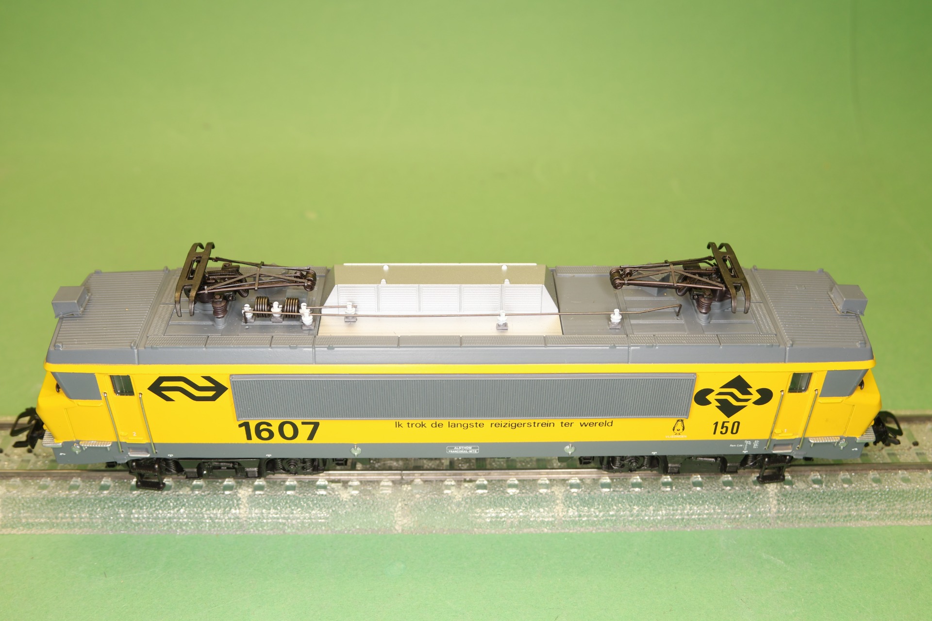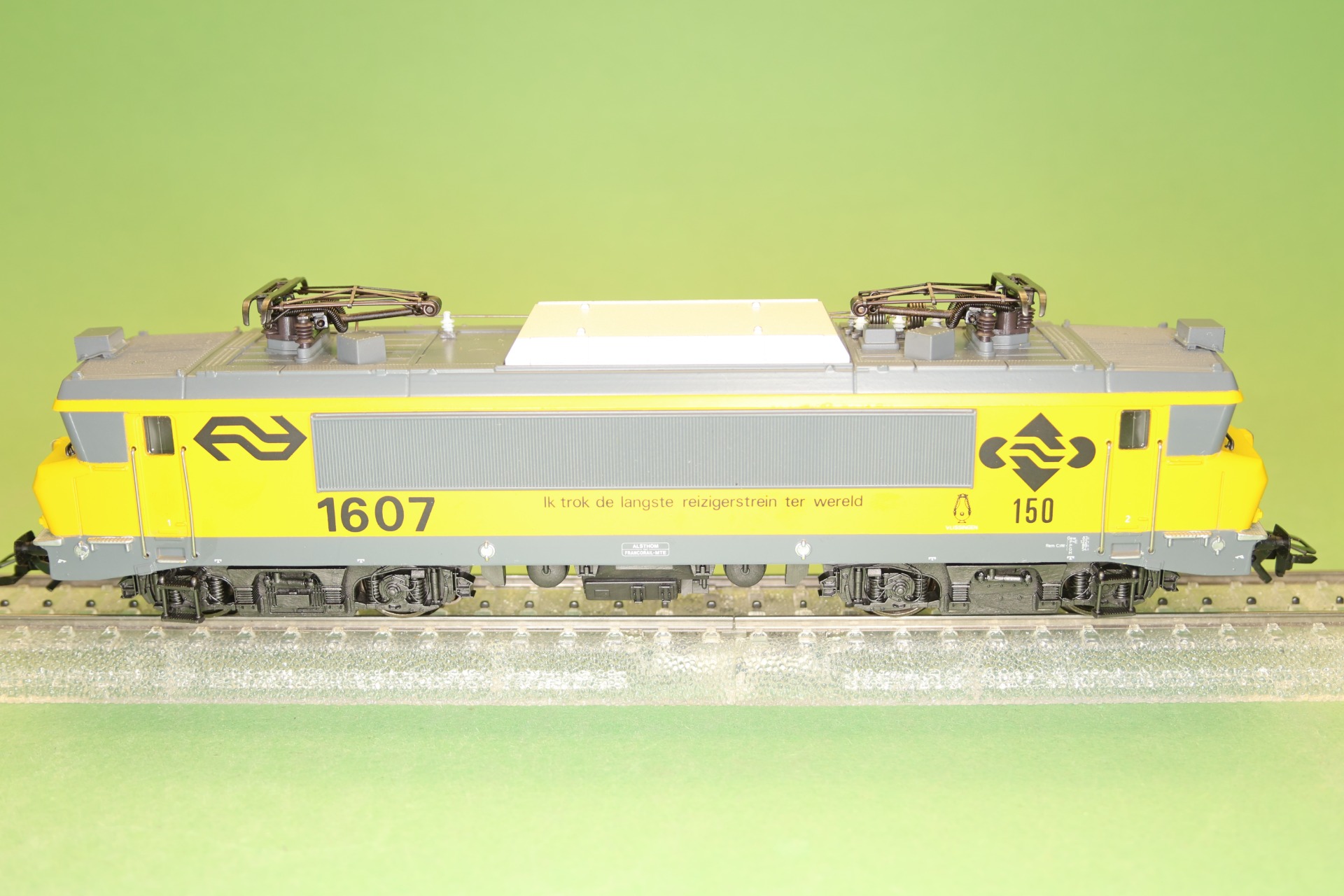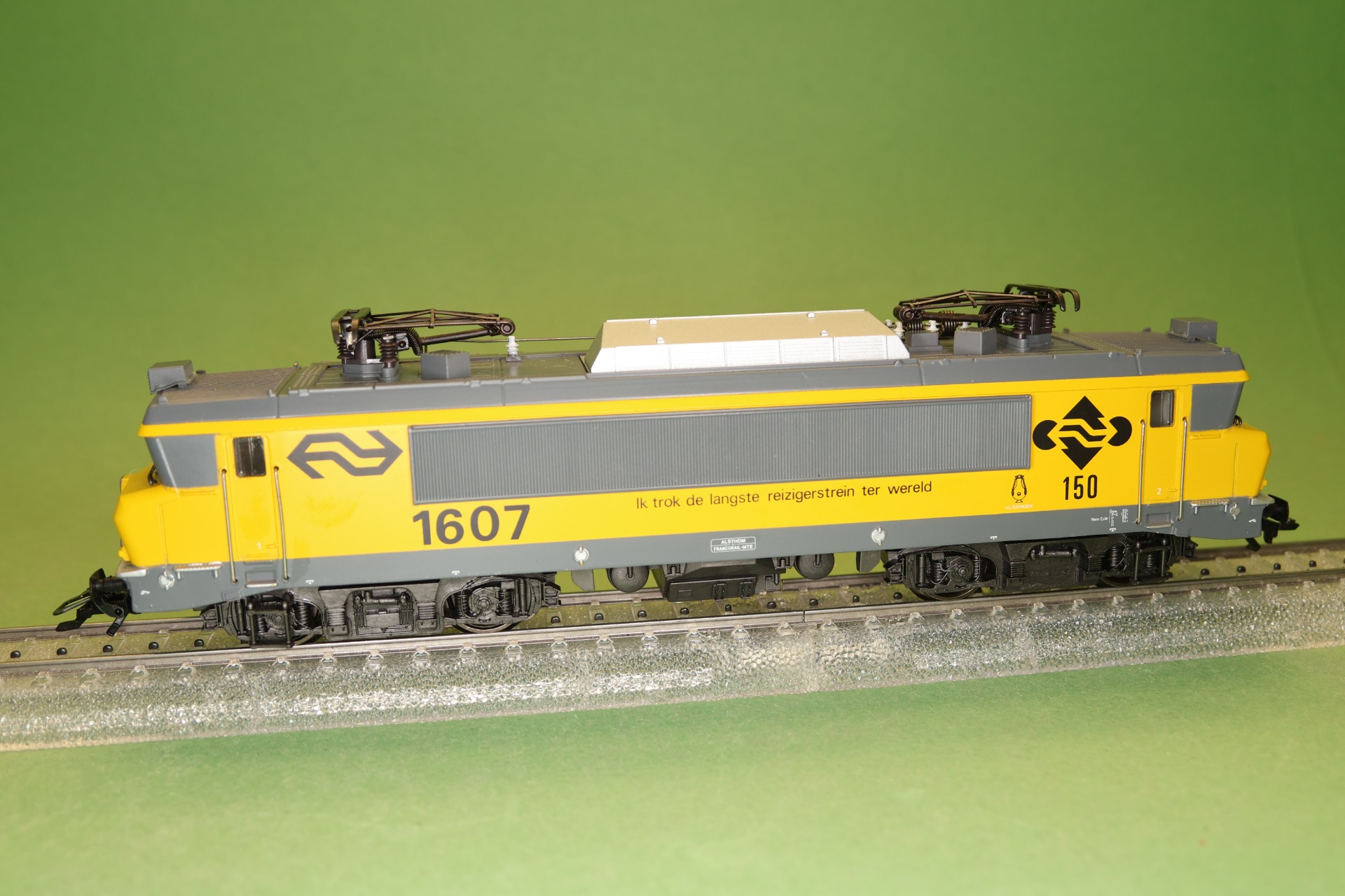 Elektrische locomotief van de bouwserie NS 1600 van de Nederlandse Spoorwegen (NS) in geel/grijze kleurstelling uit tijdperk IV en draagt het bedrijfsnummer 1607 en het stadswapen van Vlissingen. Op de zijkant staat de tekst "Ik trok de langste reizigerstrein ter wereld". Deze tekst slaat op een rekordpoging van de 1607, welke ter ere van het 150-jarige jubileum van NS de langste trein ter wereld trok. Het model is analoog en is in het bezit van een DCM-motor met veldspoel en een electronisch relais. De verlichting bestaat uit lampjes. De locomotief heeft een 3-punts frontsein welke wisselt met de rijrichting. Het model is 20 cm lang en is voorzien van kortkoppelingen (KK).
