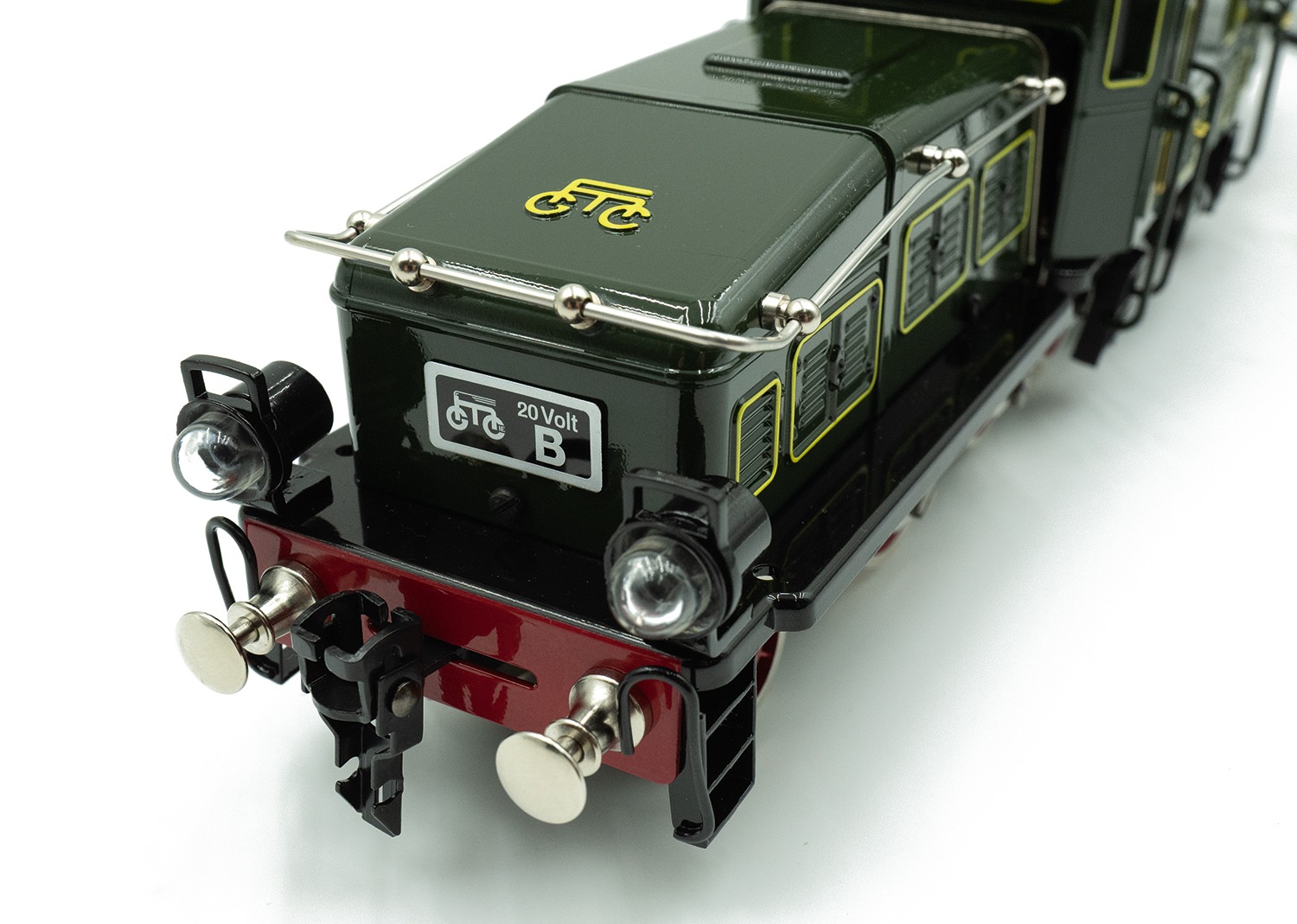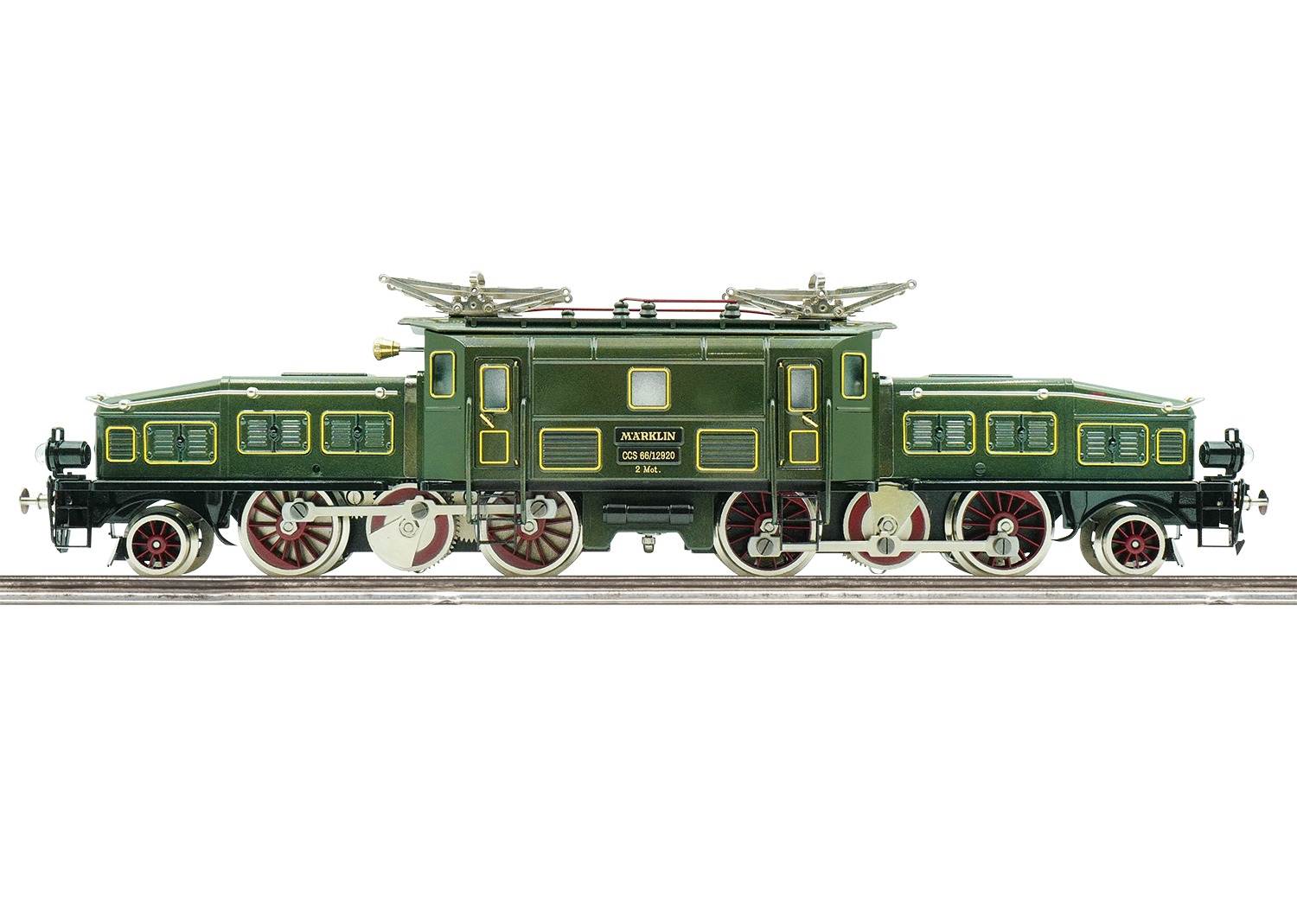 Model: Drijfwerk en opbouw van zinkdruk gietwerk. Aandrijving met twee motoren op beide draaistellen. Met digitale mfx decoder. Wit tweepunts frontsein dat wisselt met de rijrichting, analoog brandend en digitaal schakelbaar.Lengte over de buffers 43,5 cm