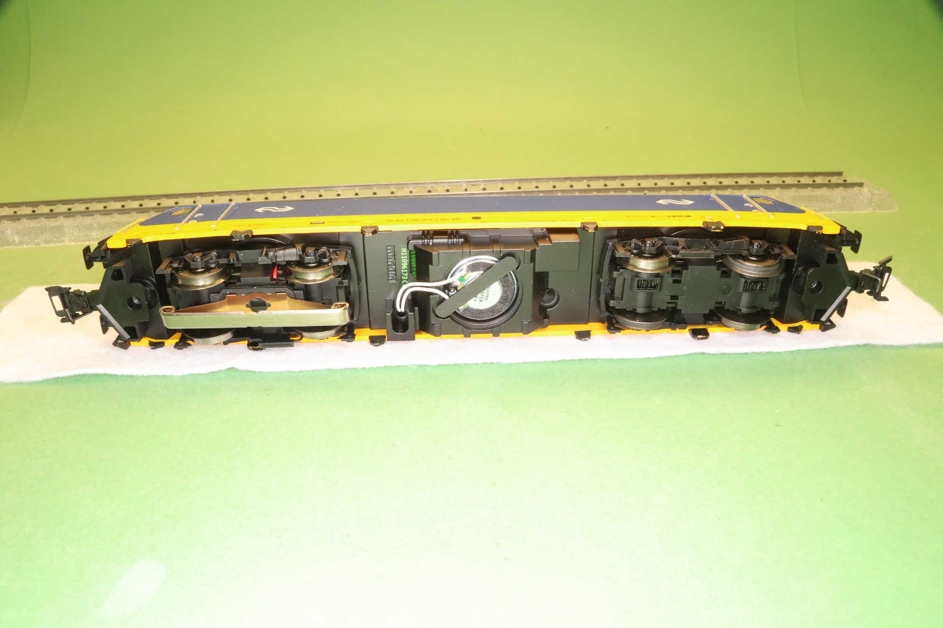 Model: met digital-decoder mfx, evenals uitgebreide geluidsfuncties. Speciale motor, centraal ingebouwd. 4 assen over cardan aangedreven. Antislipbanden. Met de rijrichting wisselend driepunts frontsein en 2 rode sluitseinen conventioneel in bedrijf, digitaal schakelbaar. Frontsein op lockant 2 en 1 beide apart digitaal uitschakelbaar. Als het frontsein op beide lockanten is uitgeschakeld, dan aan beide kanten werking van het dubbel A-sein. Verlichting met onderhoudsvrije warmwitte en rode LEDs. 4 mechanisch werkende dakstroomafnemers. Lengte over de buffers 21,7 cm.