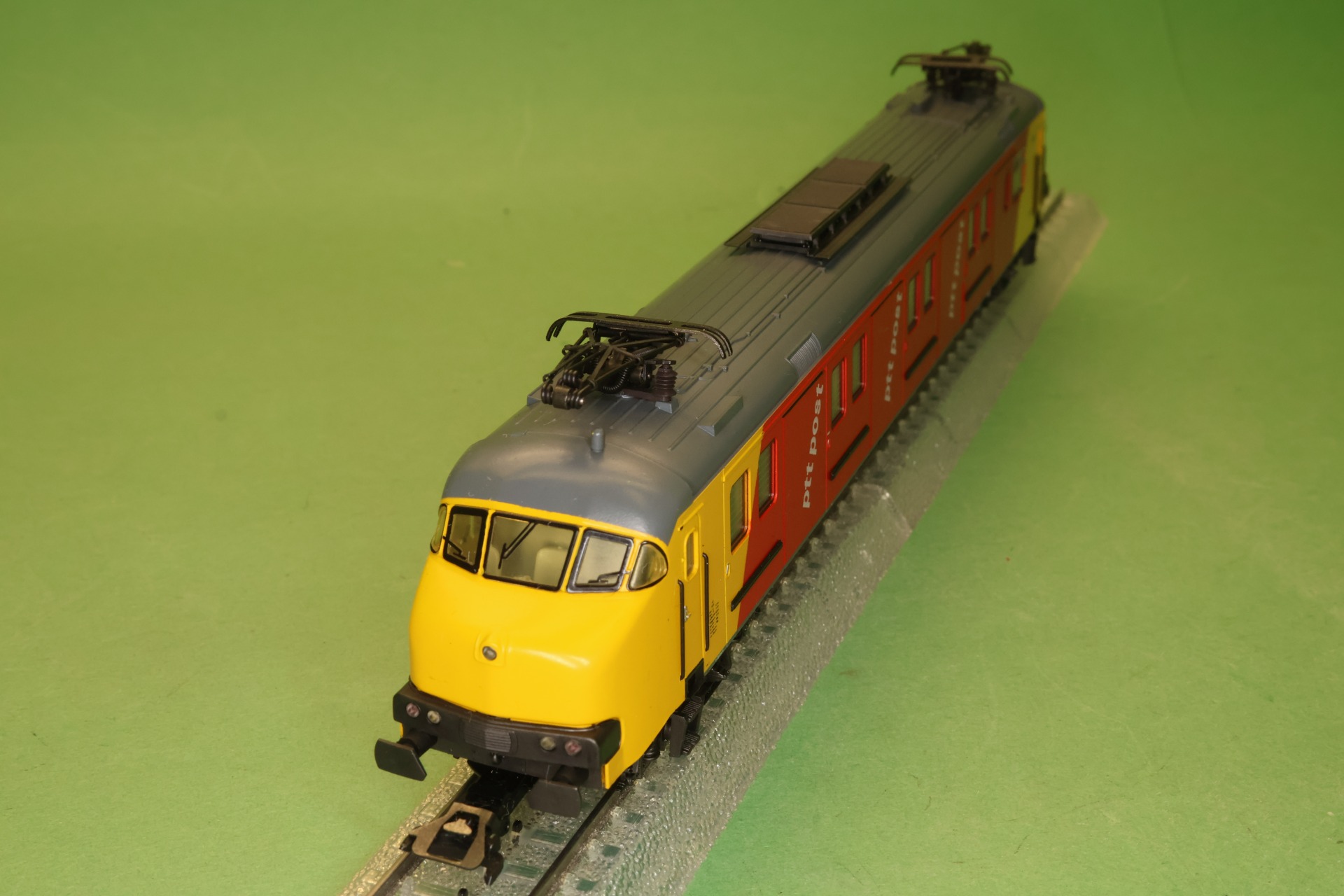 Nederlandse Spoorwegen (NS PTT) in geel/rode kleurstelling uit tijdperk IV. Het model is digitaal en is in het bezit van een drum collector motor (DCM) met veldspoel en een Märklin 6080 decoder. Het model heeft een 3-punts frontsein en 2-punts (rood) sluitsein welke wisselt met de rijrichting. De verlichting bestaat uit LED’s. Verder heeft het model cabineverlichting. Deze cabineverlichting geschiedt middels een steek lampje (610040). Binnen interieur, metalen grepen en andere details gemonteerd. Het treinstel is 27,0 cm lang en is voorzien van kortkoppelingen (KK).