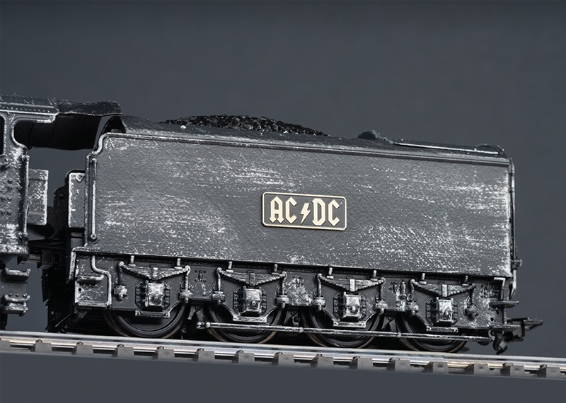 Stoomlocomotief met tender „Black Ice”, nagebouwd aan de hand van de podiumachtergrond van de AC/DC Black Ice World Tour 2008 – 2010.