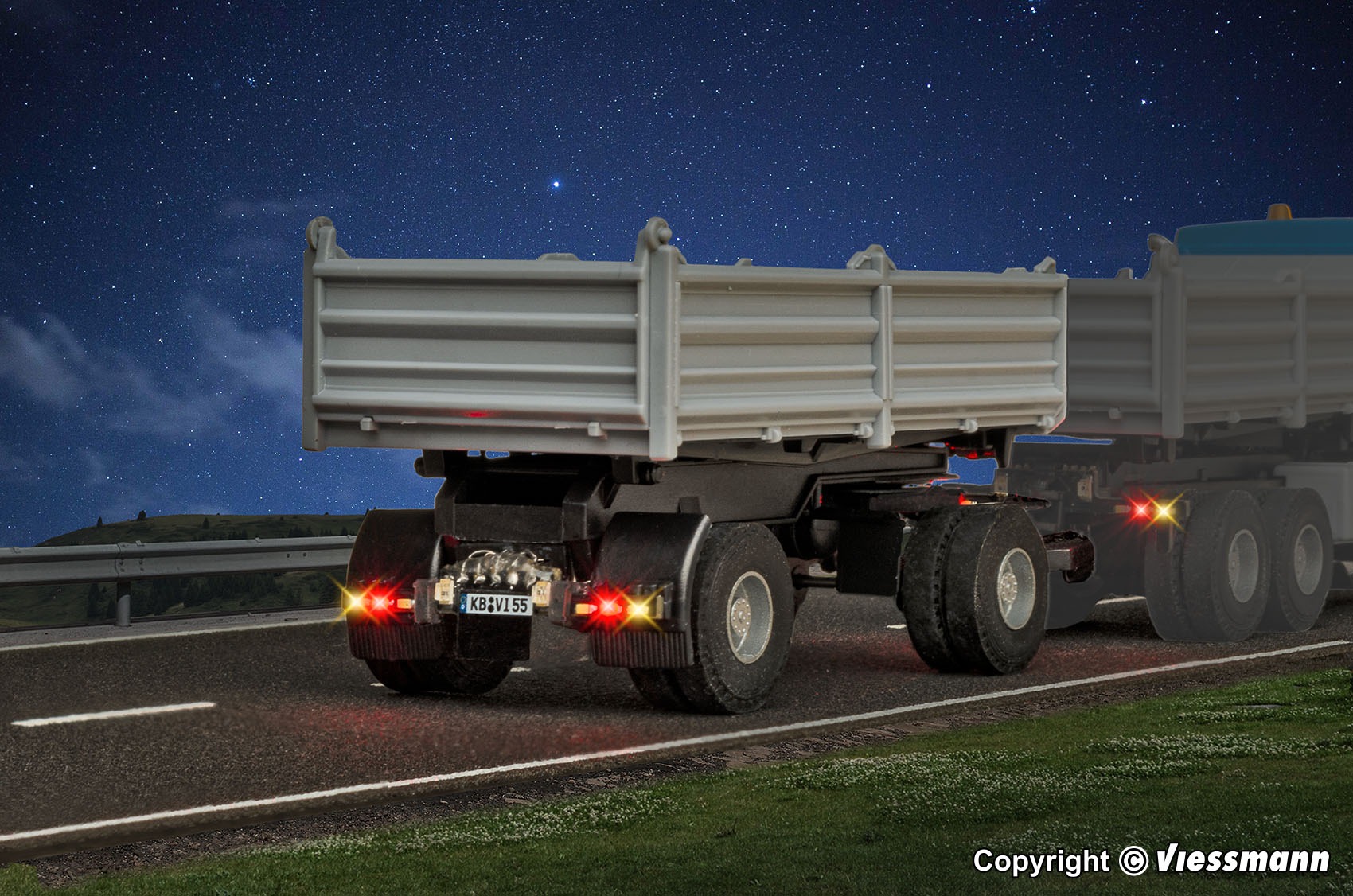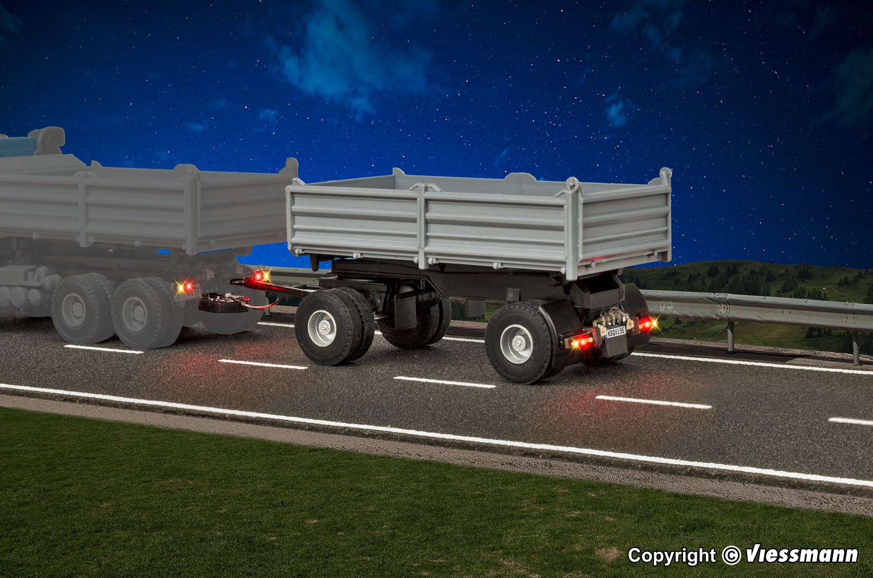 De aanhangwagen met achterverlichting beschikt over een 5-polige steekkoppeling om verbinding te maken met het betreffende voertuig. Door de verbinding met de tractor worden de volgende functies overgedragen: