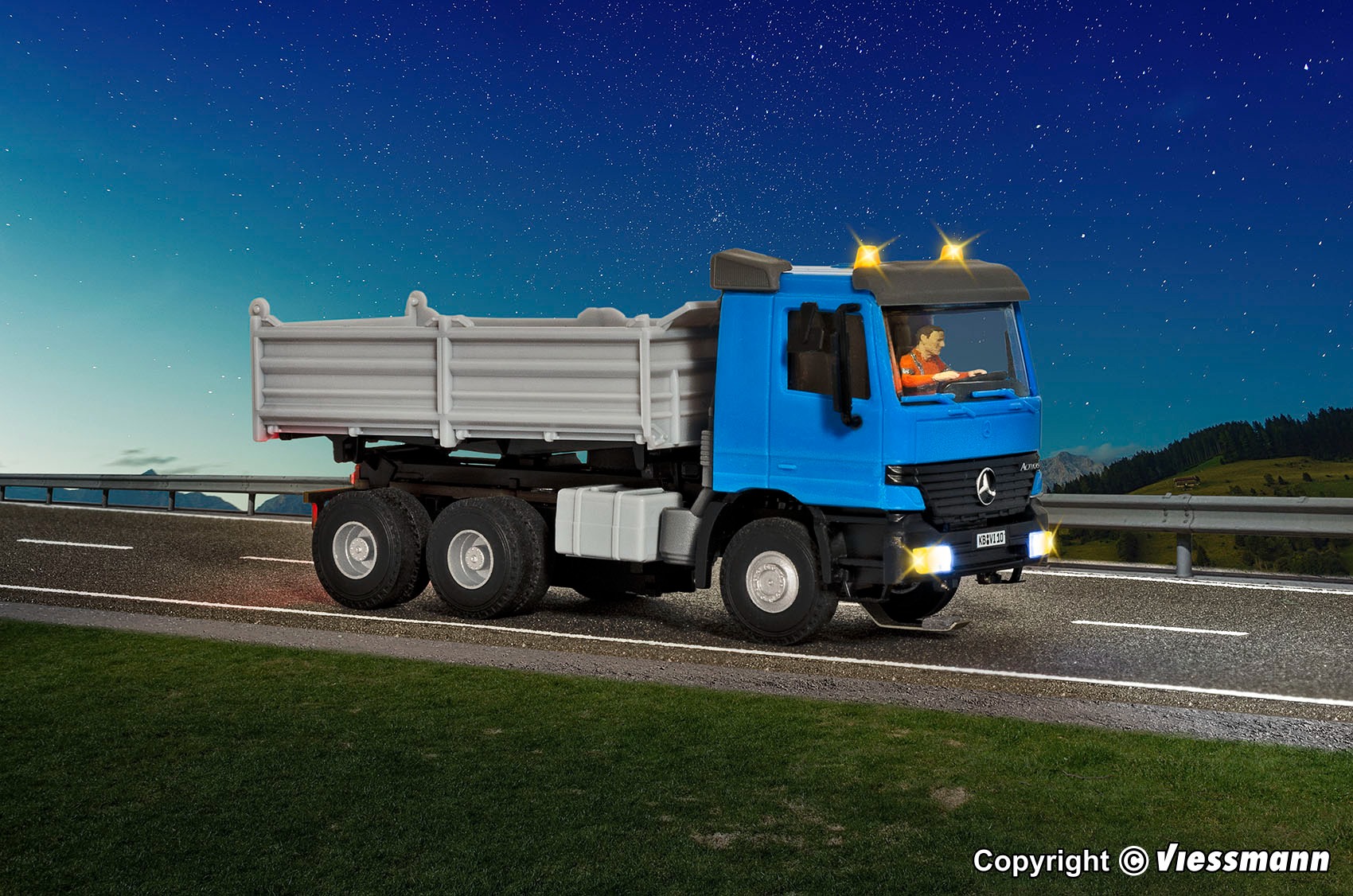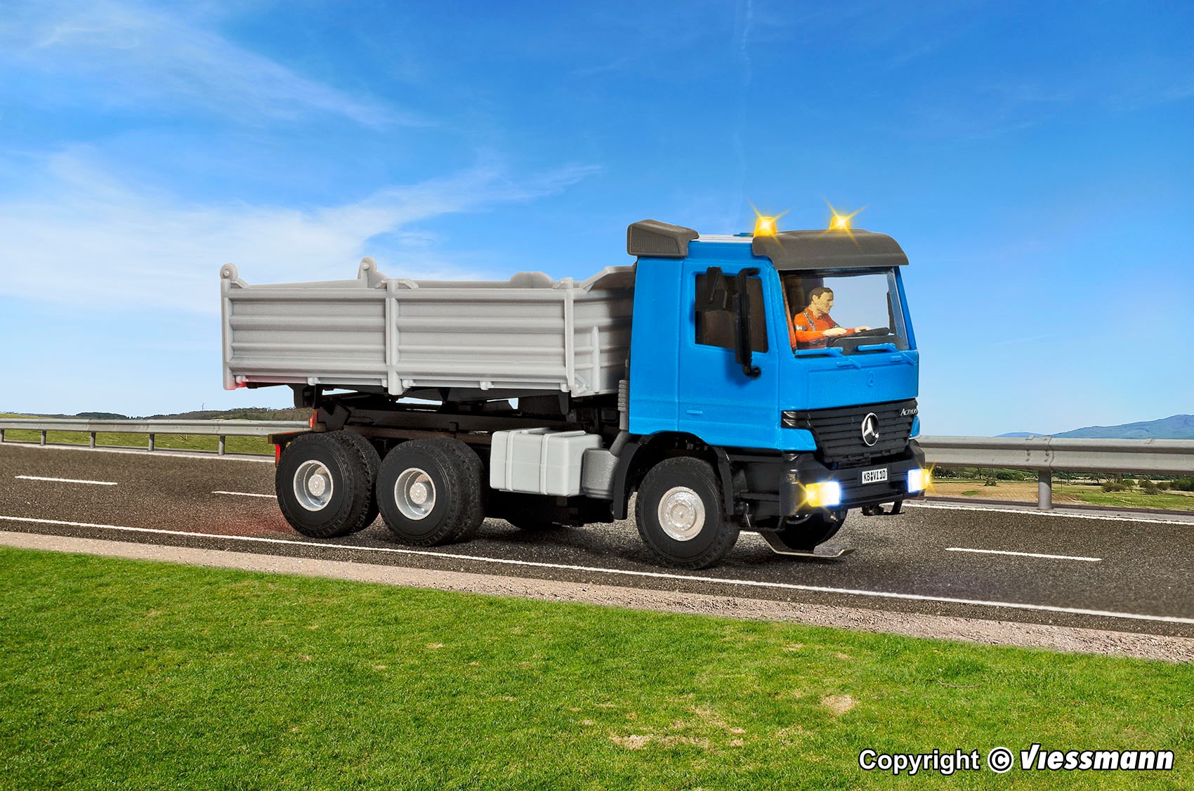 Viessmann 8000 CarMotion Basis Starterset, MB ACTROS kiepwagen met zwaailichten, blauw