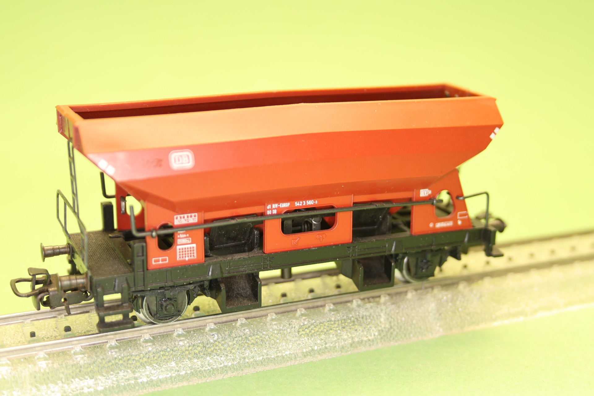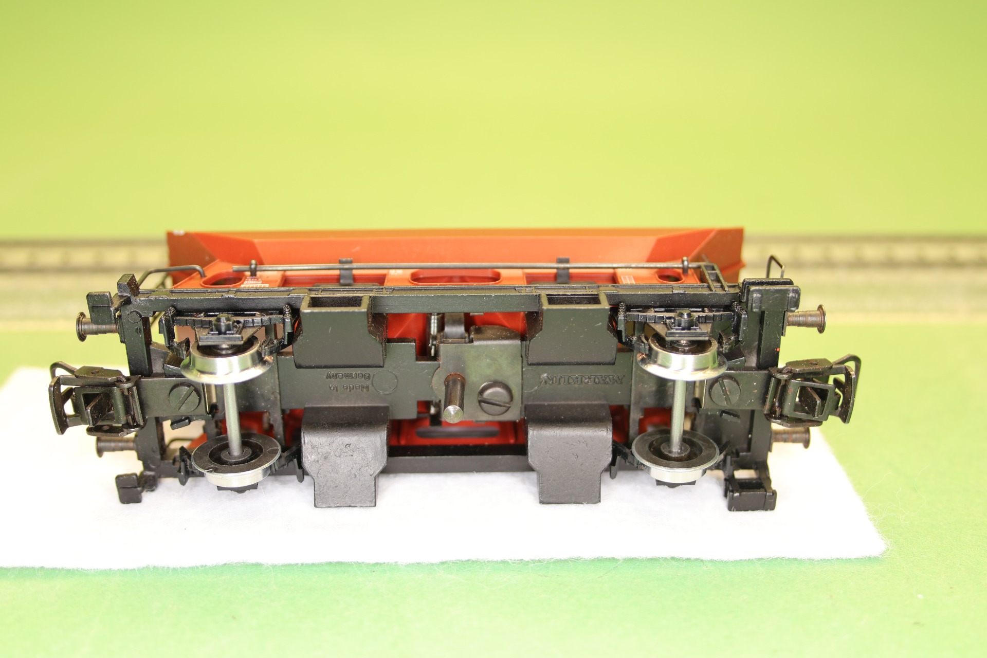 Model: Loskleppen door hendel of op afstand geregeld via ontkoppelrails om de kleppen te openen. Lengte over de buffers 11,2 cm.
