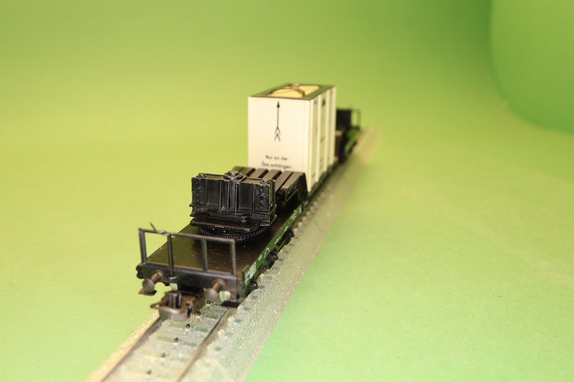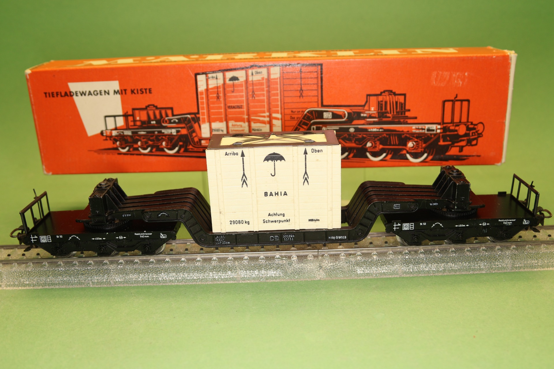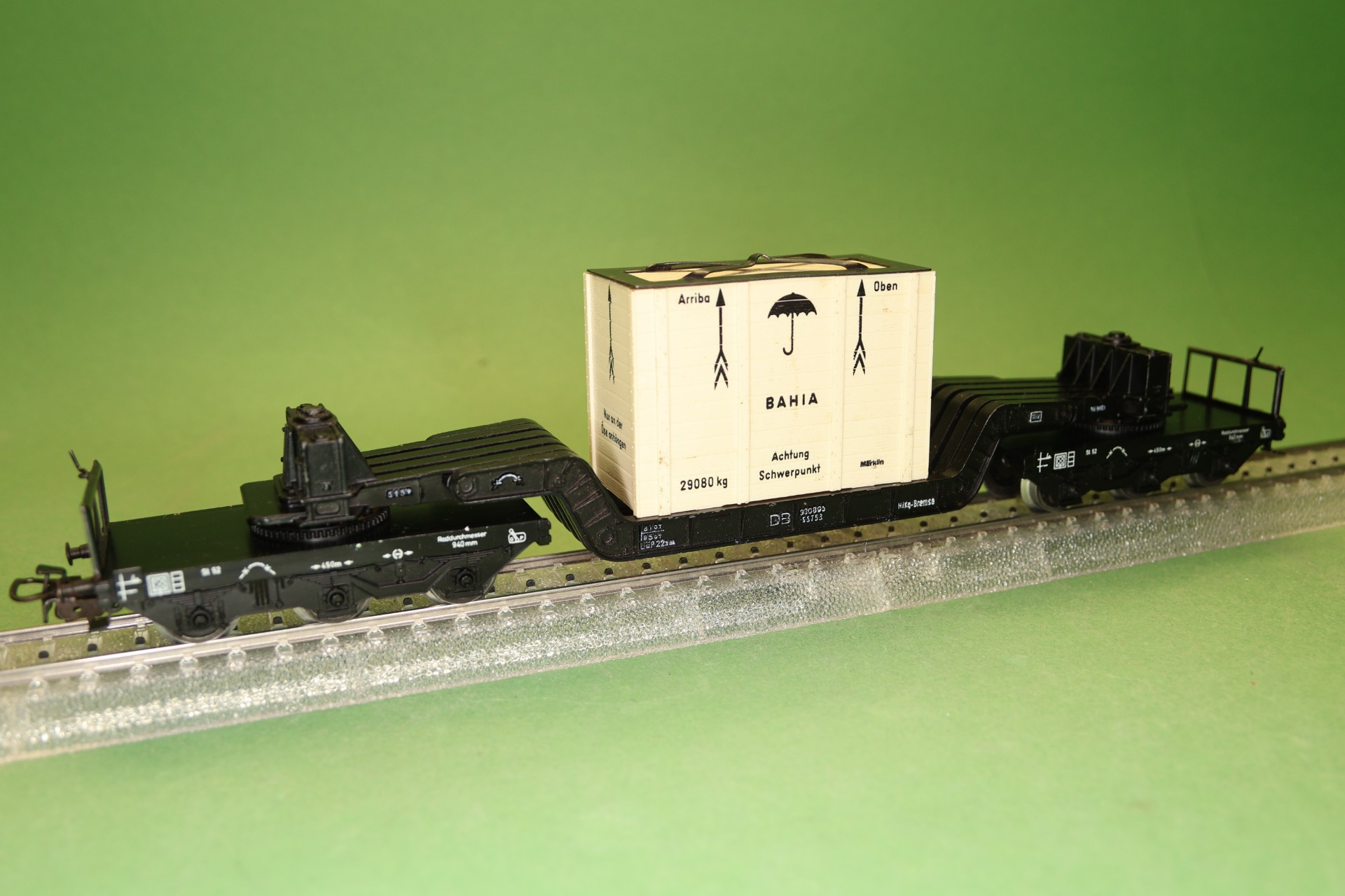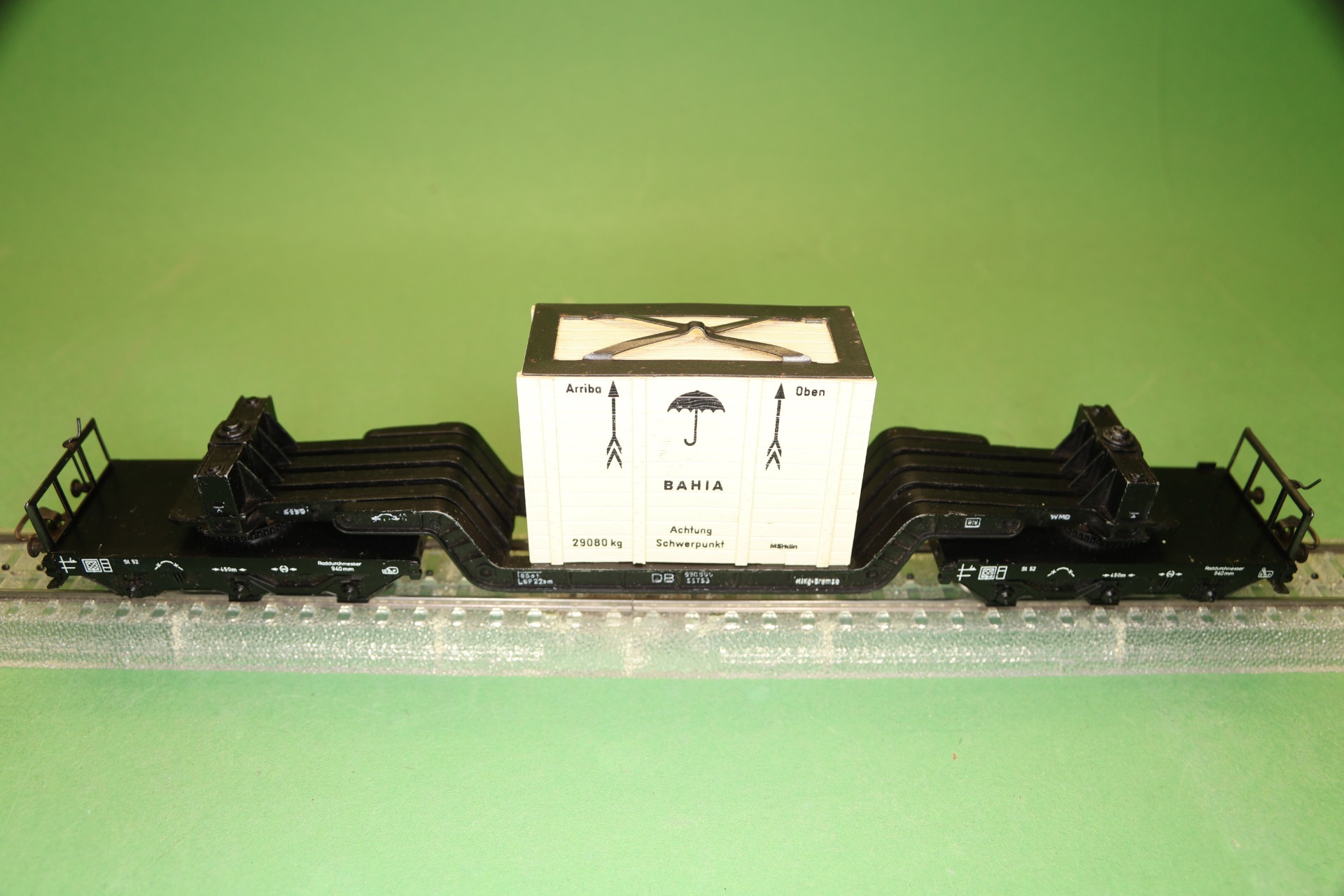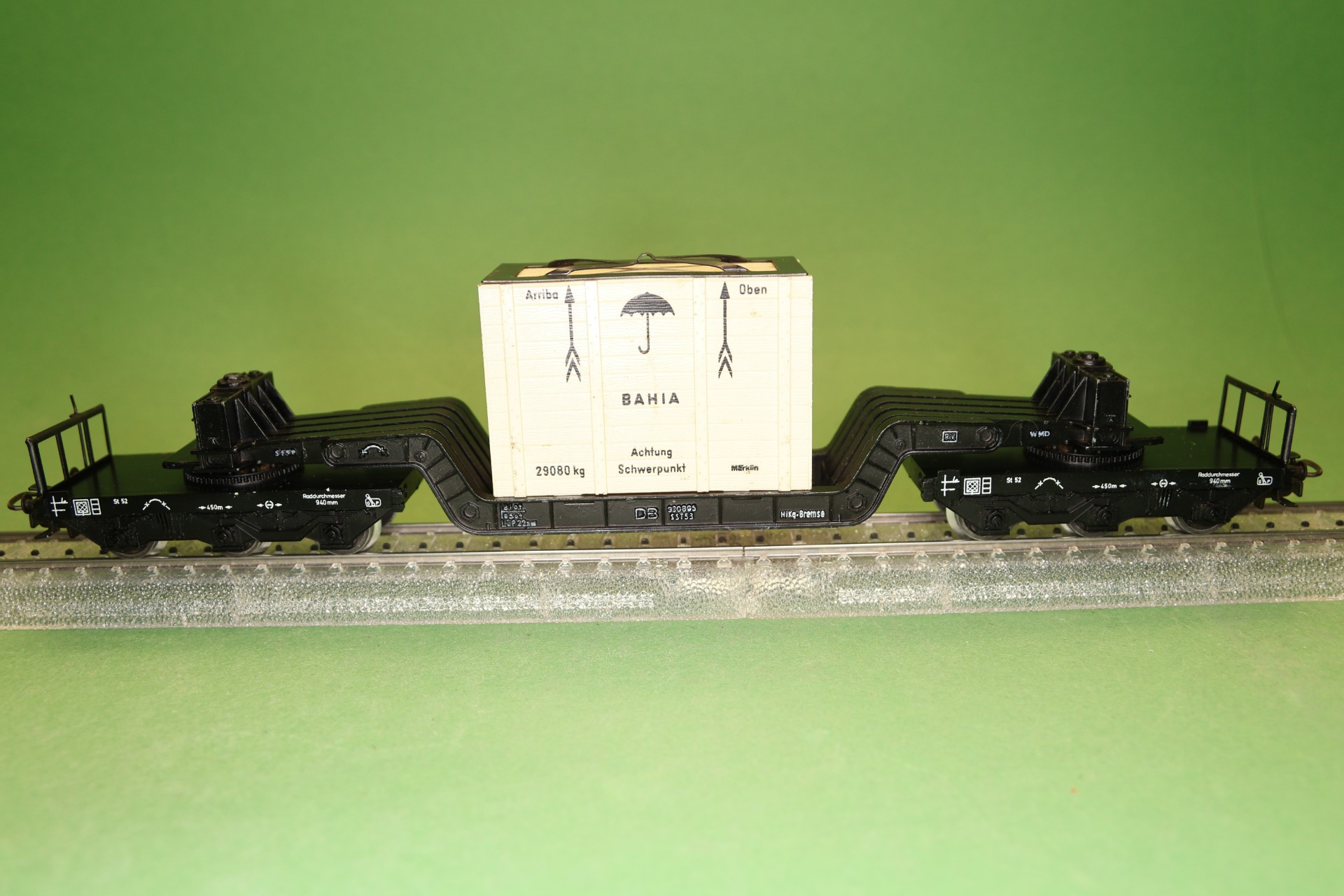 Dieplader wagon (ook wel kuilwagen genoemd) van het type SSI 53, van de Deutsche Bundesbahn (DB) uit tijdperk III. De wagon is voorzien van een grote kist met opdruk "BAHIA". De wagon heeft een lengte van 25 cm en is voorzien van beugel-koppelingen (BK). Er zijn door Märklin meerdere typen van deze kuilwagen uitgebracht die onderling verschillend kunnen zijn wat kleur, belettering, opschriften en soort belading betreft. De dieplader is van het type SSI 53 v.d. DB. Een 6-assige wagen van gietwerk/kunststof. Wagenchassis met verlaagd laadplateau en 2 draaistellen. Belading: afneembare kist. Lengte over de buffers 25 cm.