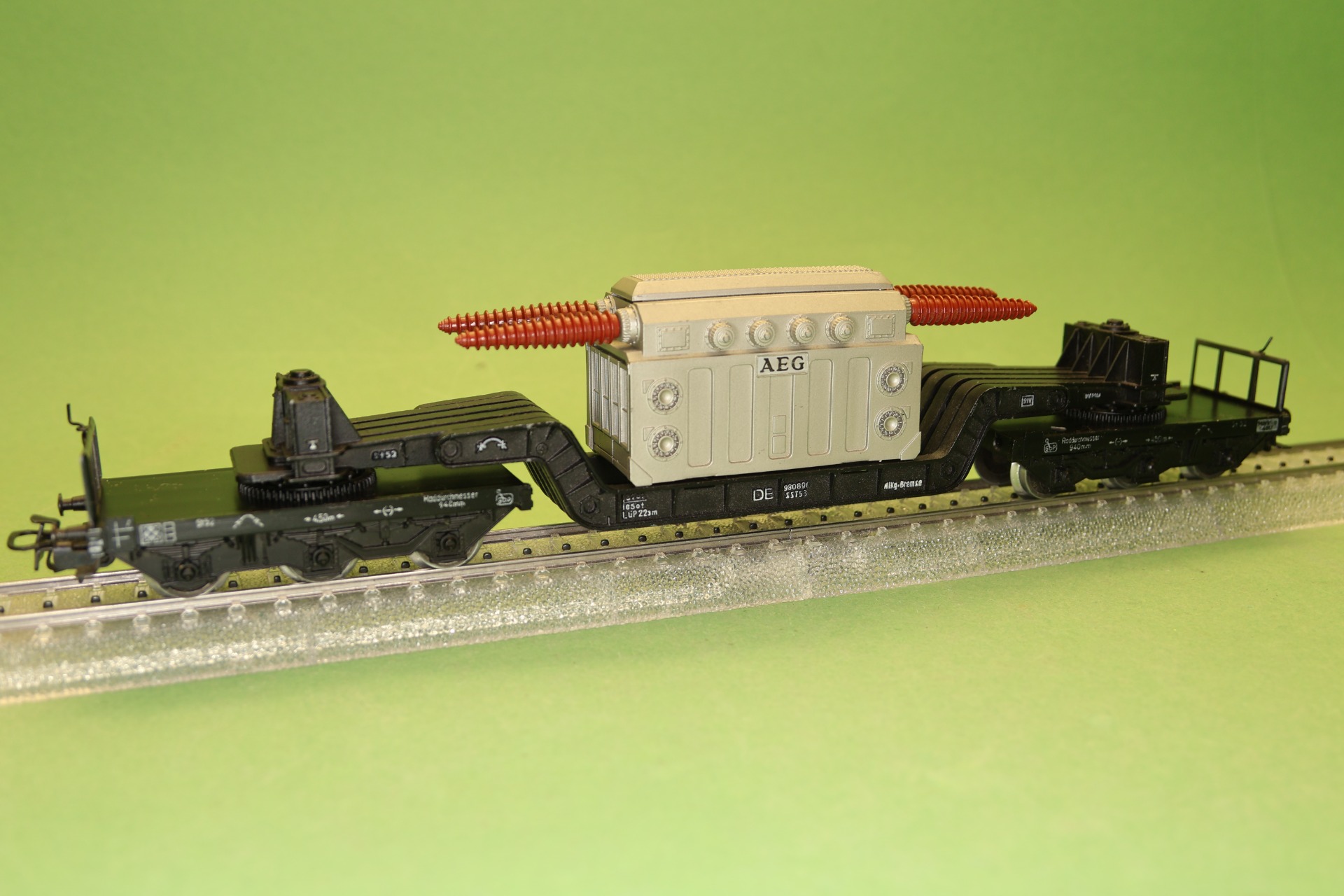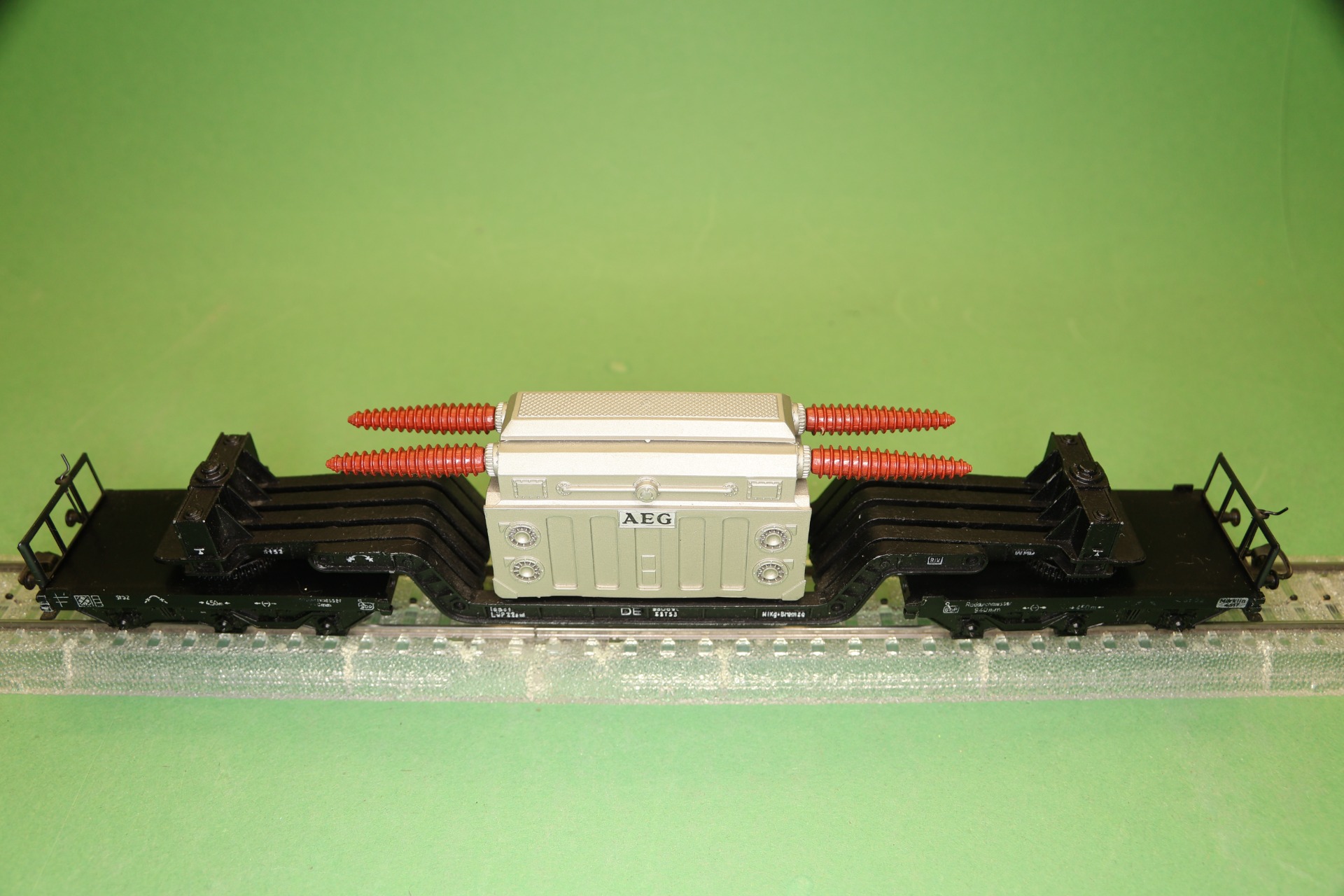 Dieplader wagon (ook wel kuilwagen genoemd) van het type SSI 53, van de Deutsche Bundesbahn (DB) uit tijdperk III. De wagon is voorzien van een zilverkleurige transformator met een bord van "AEG". De wagon heeft een lengte van 25 cm en is voorzien van beugel-koppelingen (BK). Er zijn door Märklin meerdere typen van deze kuilwagen uitgebracht die onderling verschillend kunnen zijn wat kleur, belettering, opschriften en soort belading betreft. De dieplader is van het type SSI 53 v.d. DB. Een 6-assige wagen van gietwerk/kunststof. Wagenchassis met verlaagd laadplateau en 2 draaistellen. Belading: afneembare transformator of kist. Lengte over de buffers 25 cm.