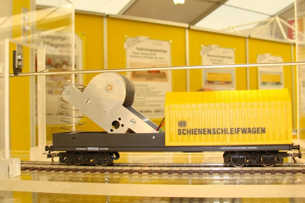 Met de reinigingswagen voor rails en bovenleidingen verwijdert u... Illustratie aangekoekte olie- en vuilresten afzettingen van slijtage van antislipbanden oxidelagen op de rail, middenrail en rijdraad ...en bereikt u zo: aanzienlijk langere bedrijfsuren voor uw voertuigen betrouwbare stroomafname van de rail, middenrail en rijdraad ononderbroken werking De volledig functionele, mobiele reinigingswagen voor rails en bovenleidingen voor alle H0-spoor- en besturingssystemen is speciaal ontwikkeld om aangekoekte olie- en vuilresten van de rail, middenrail en rijdraad te verwijderen. Zelfs het fijnste vuil op de railkop kan aanzienlijke operationele verstoringen veroorzaken. Door de innovatieve en betrouwbare reinigingstechnologie in een railvoertuig te integreren, kunnen zelfs bijzonder moeilijk bereikbare plaatsen van uw modelspoorbaan, zoals tunnels, wisselsporen en spoordelen met bovenleidingen, eenvoudig worden gereinigd.