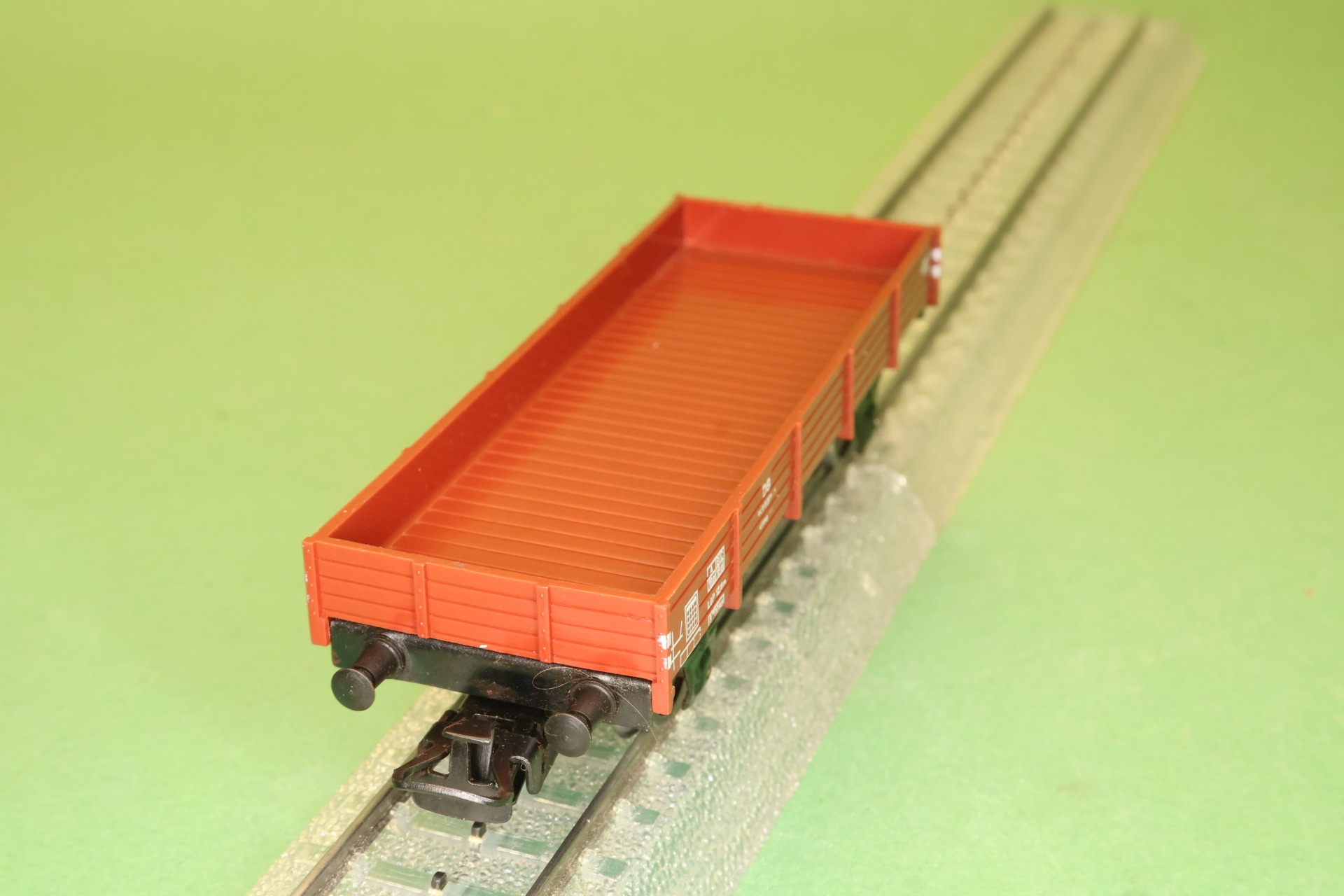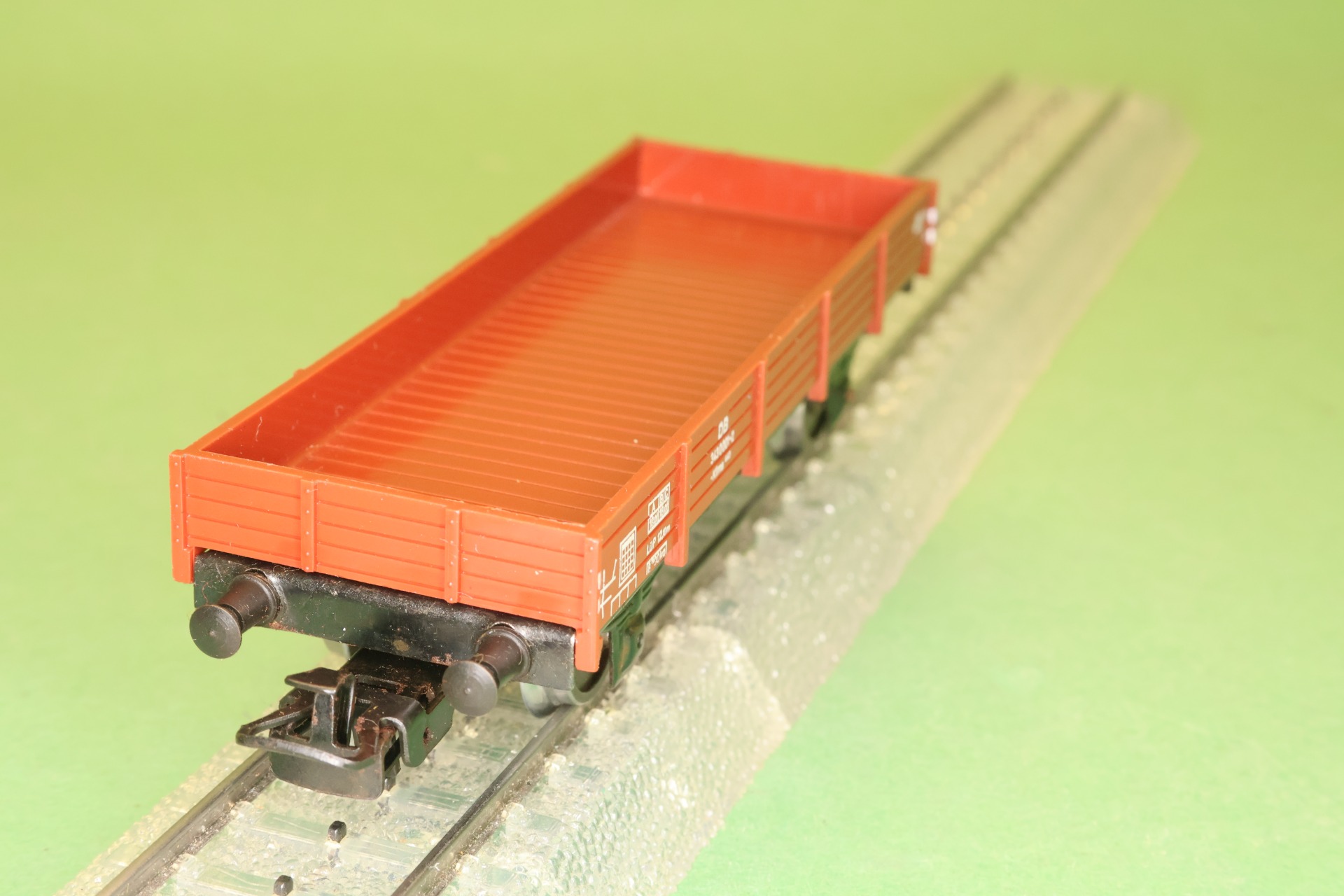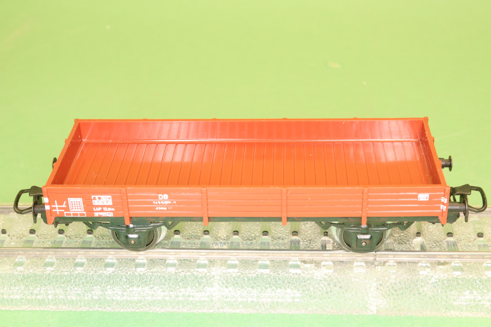 Platte bakwagen van de DB. Lengte over de buffers : 11,5 cm.