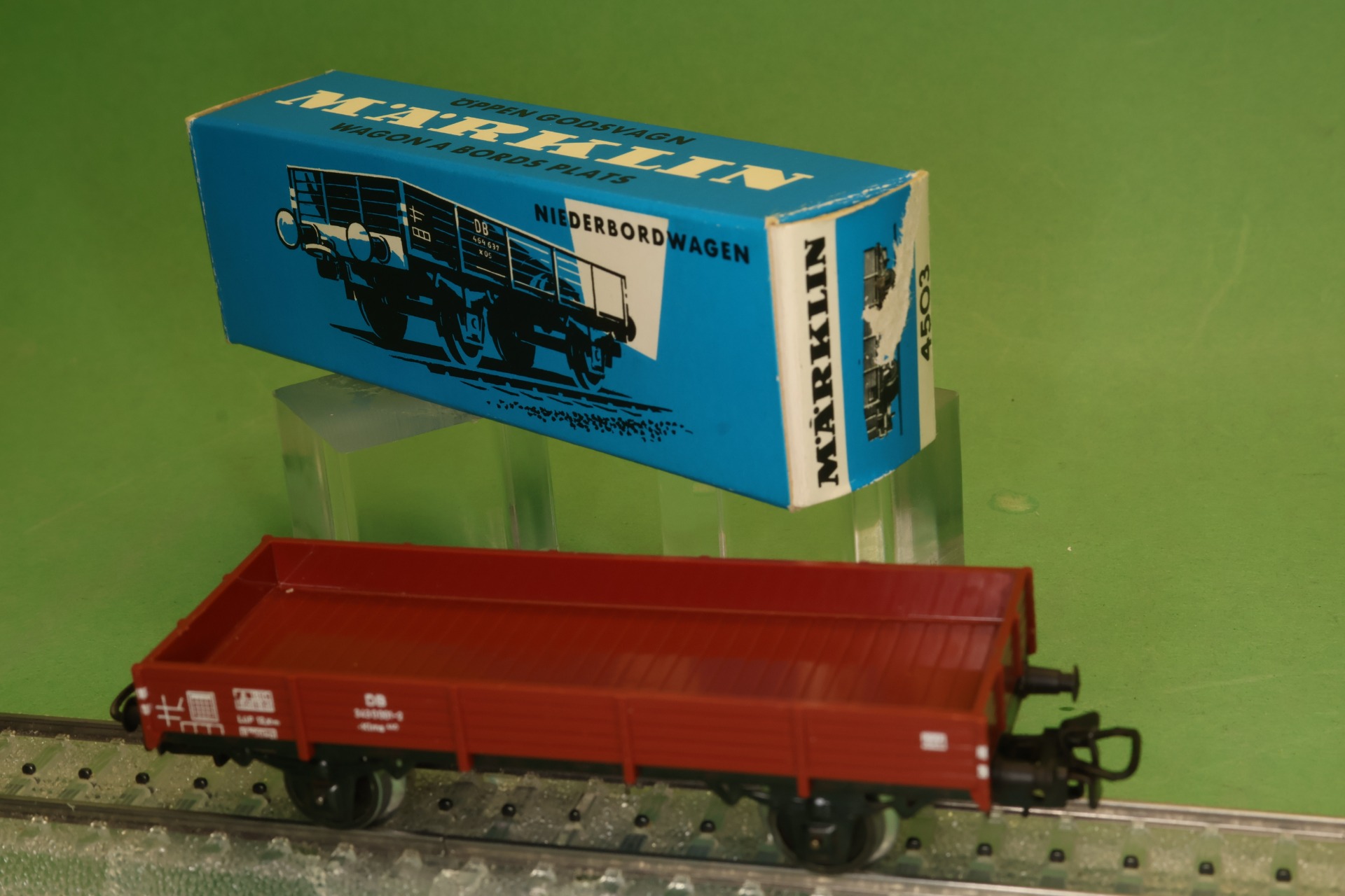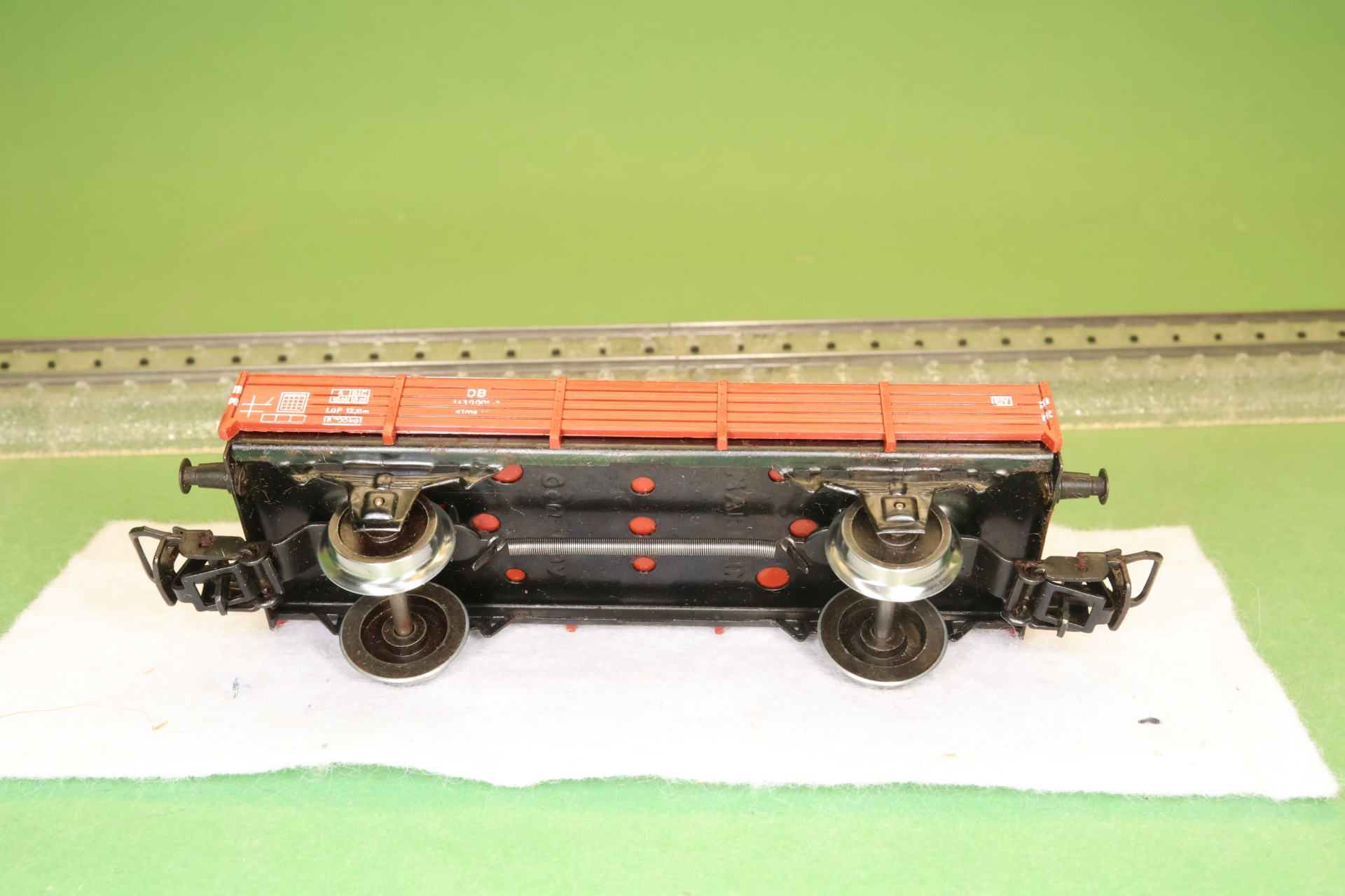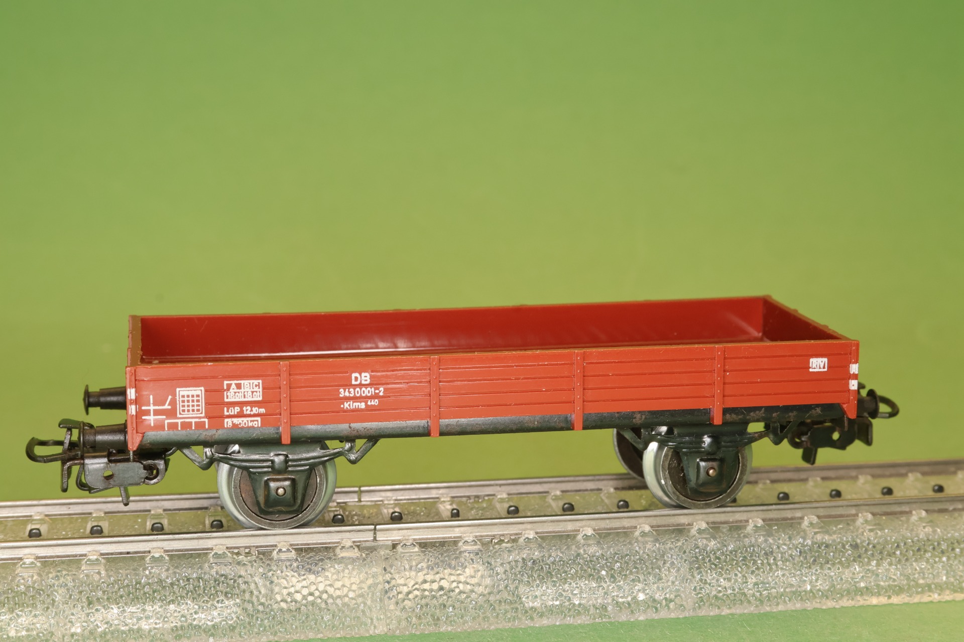 Platte bakwagen van de DB. Lengte over de buffers : 11,5 cm.