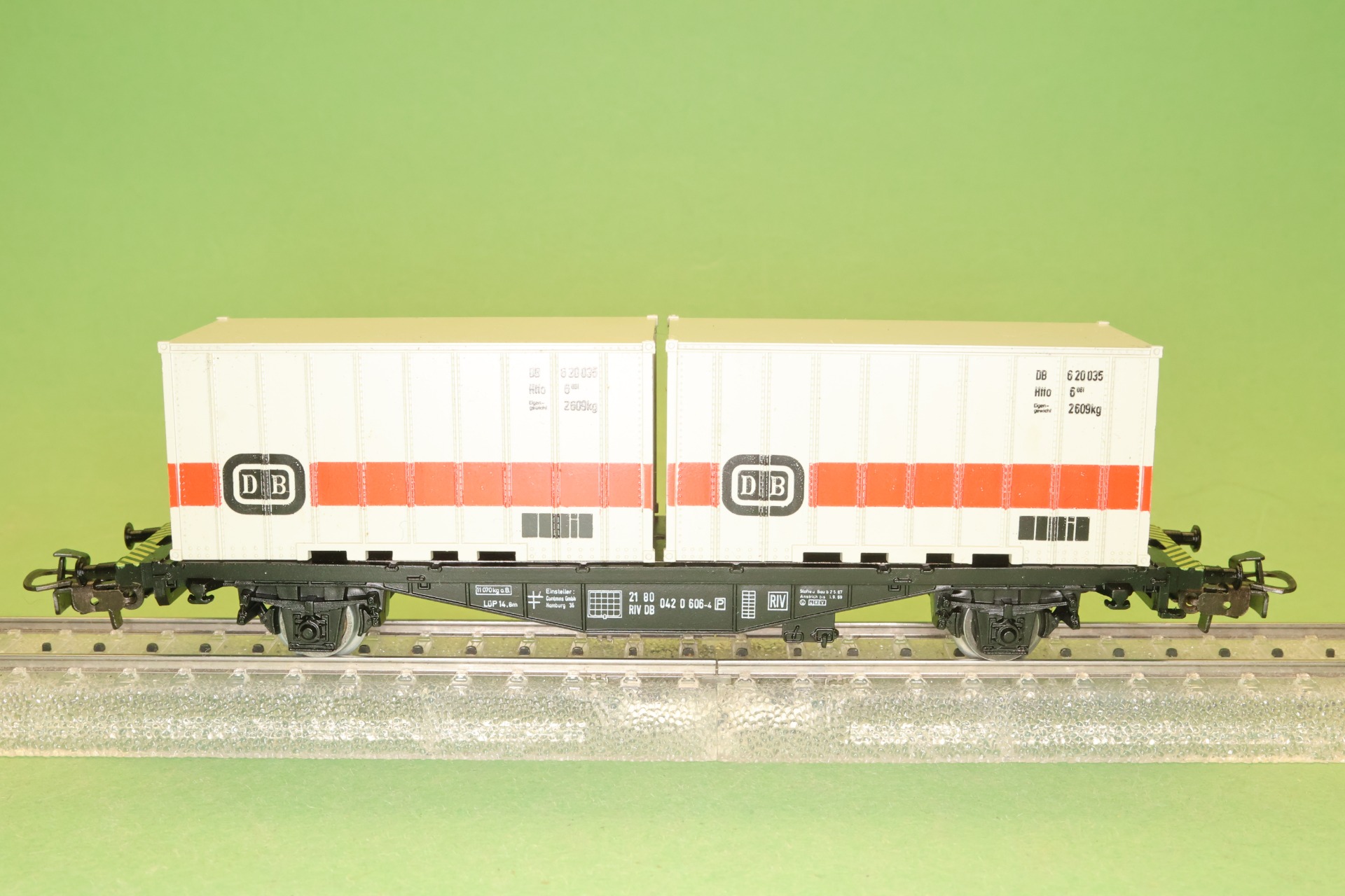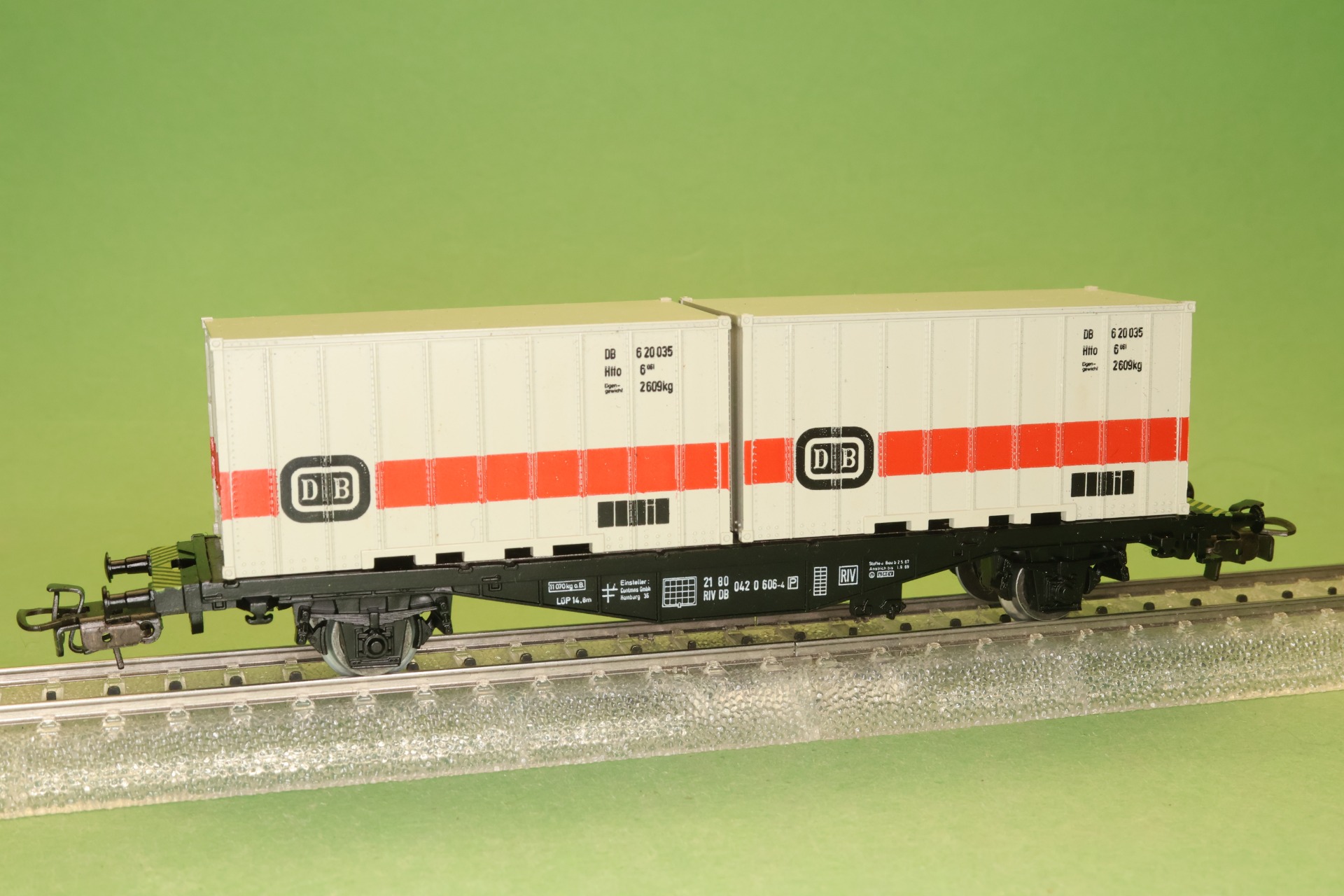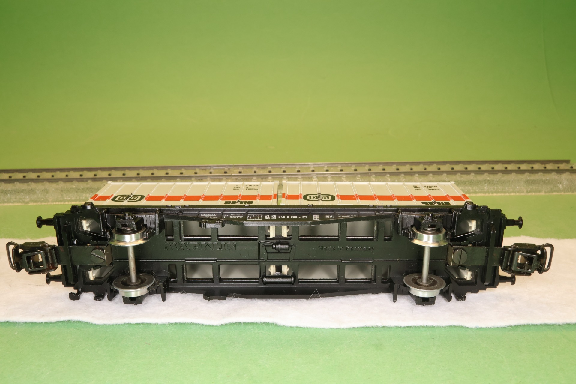 Het model Märklin 4664 is een containerwagon van het type Berlin van de Deutsche Bundesbahn (DB) uit tijdperk IV, beladen met 2 grijze containers met rode band en het DB logo. De wagon heeft een lengte van 15,6 cm en is voorzien van relex-koppelingen (RK).