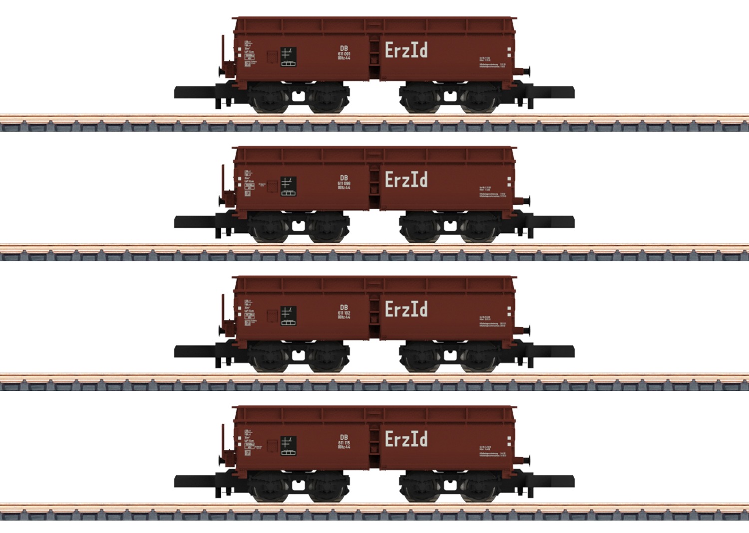 Model: Nieuw ontworpen zelflossers type OOtz 44. Met een nauwkeurig gedetailleerde kunststof opbouw met voorbeeldgetrouwe opschriften. De wagens zijn voorzien van koppelhaken. Lengte over de buffers ca. 187 mm.