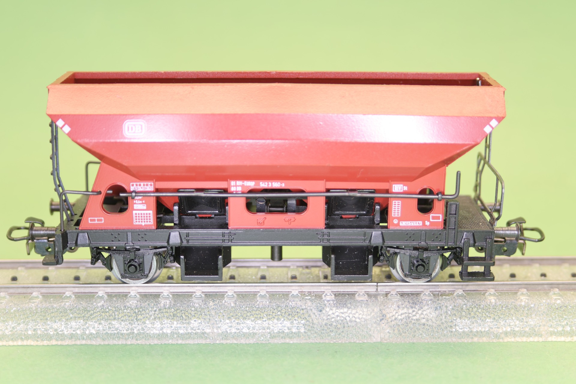 Model: Loskleppen door hendel of op afstand geregeld via ontkoppelrails om de kleppen te openen. Lengte over de buffers 11,2 cm.